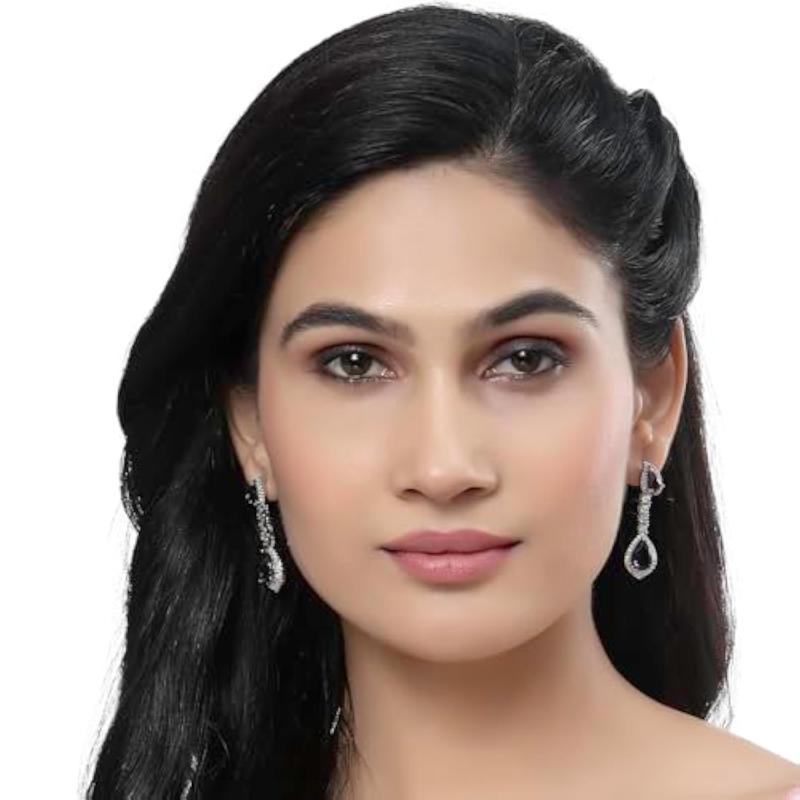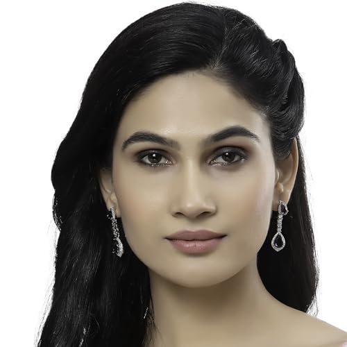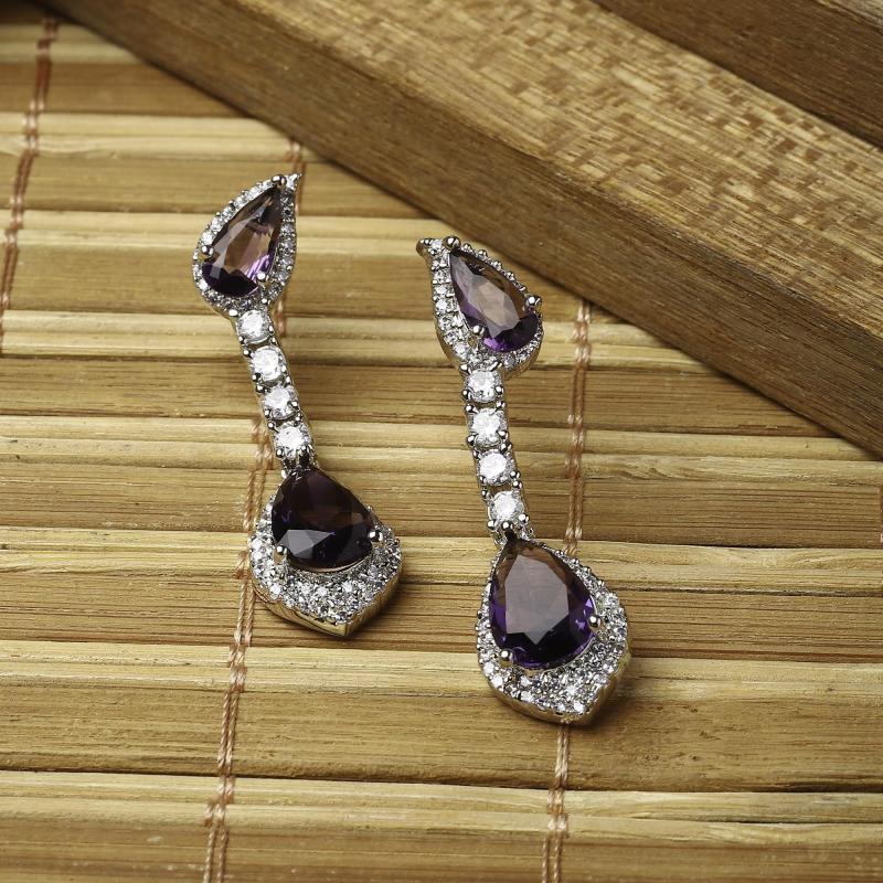 Add a touch of elegance with these classic teardrop earrings featuring American diamonds. The rhodium plating adds a luxurious finish to your look.