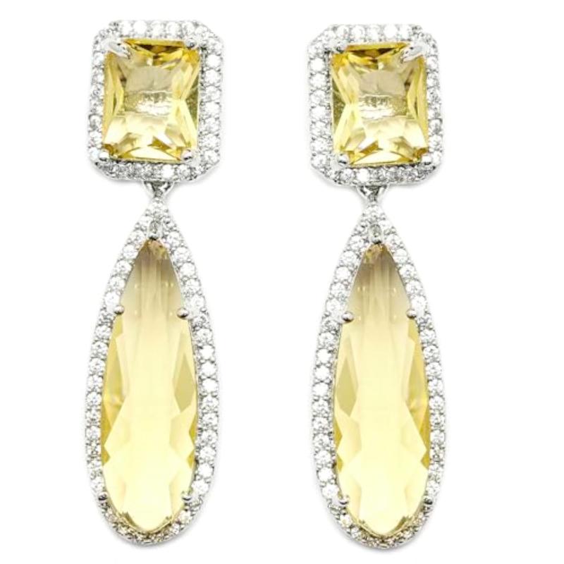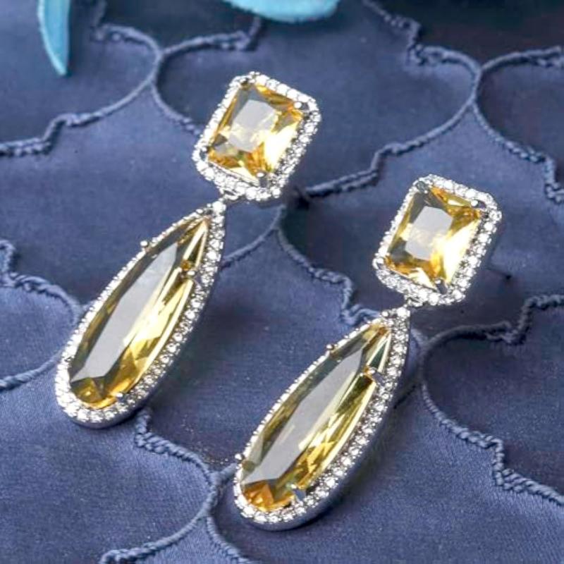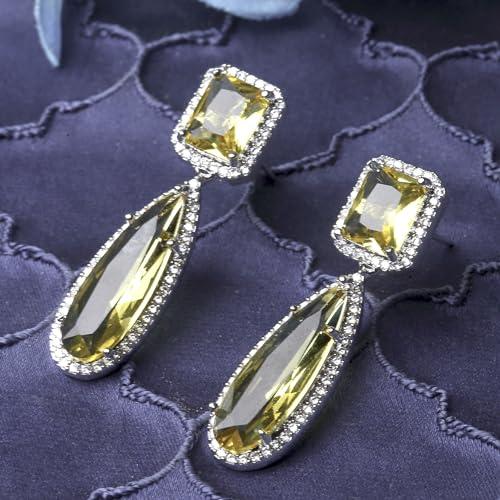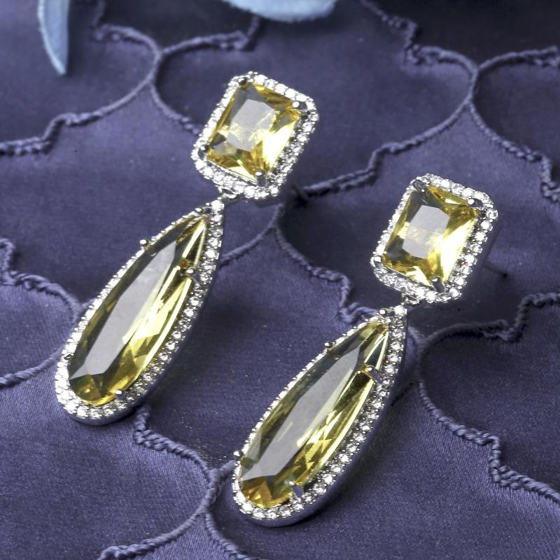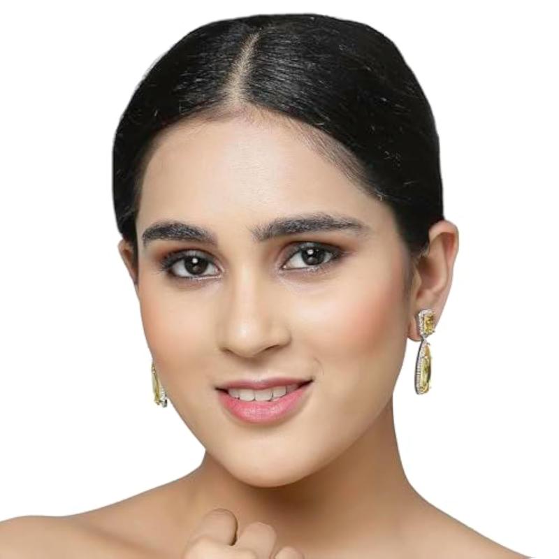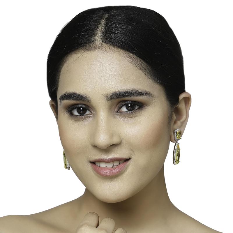 These stylish teardrop earrings are plated with rhodium and feature sparkling American diamond accents. Perfect for adding a touch of elegance to any outfit.