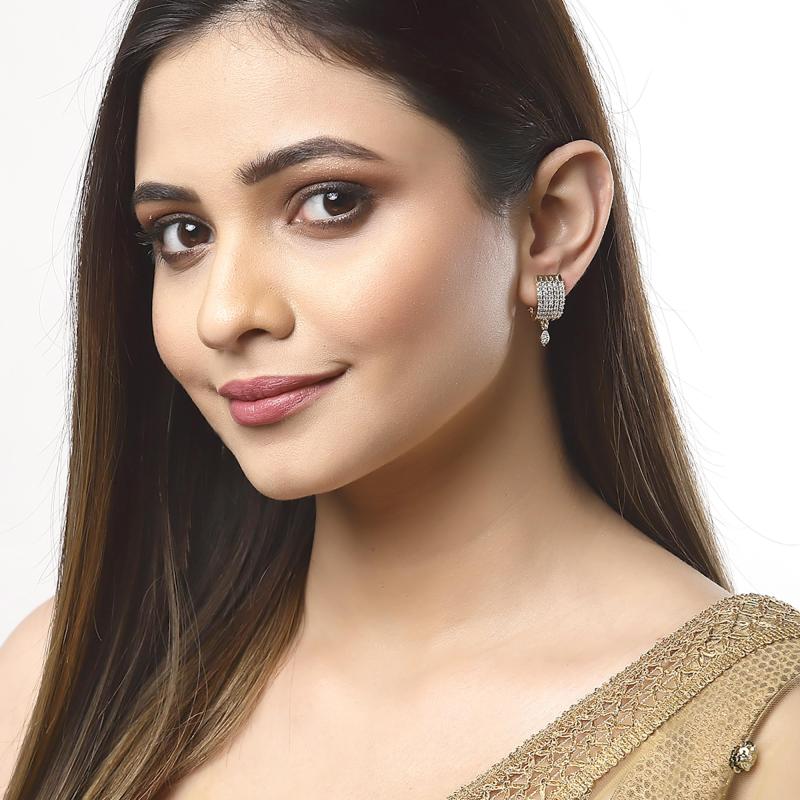 Elegant rhodium-plated silver toned studs featuring American Diamond teardrop shapes.