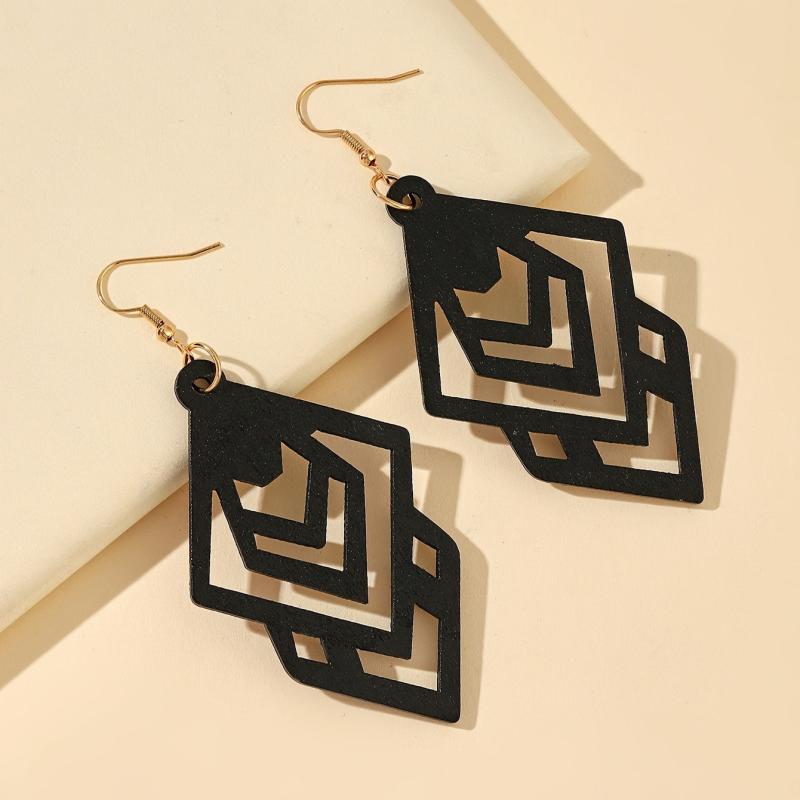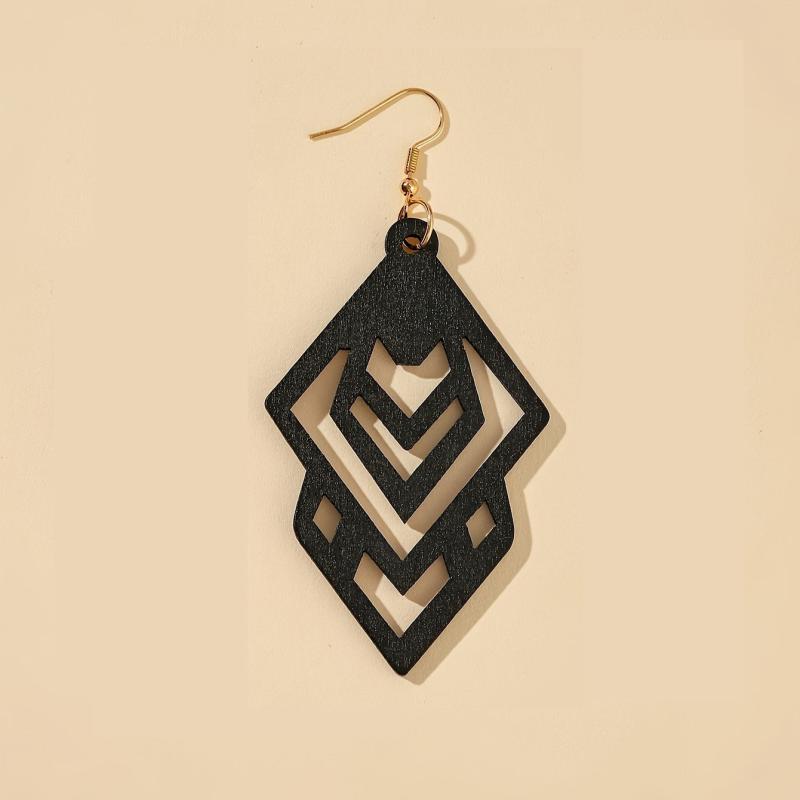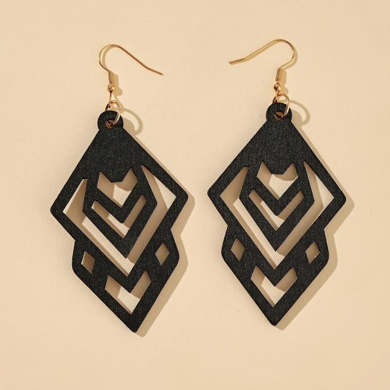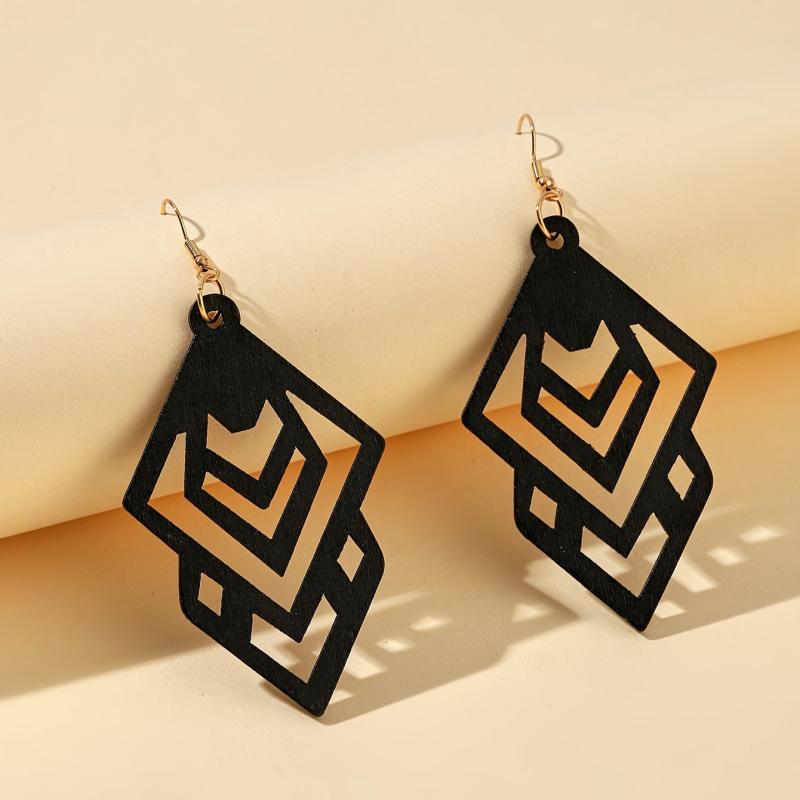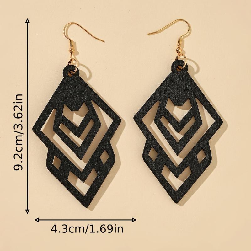 These retro style wooden dangle earrings feature a hollow pattern design, perfect for adding a touch of elegance to your fall and winter outfits.