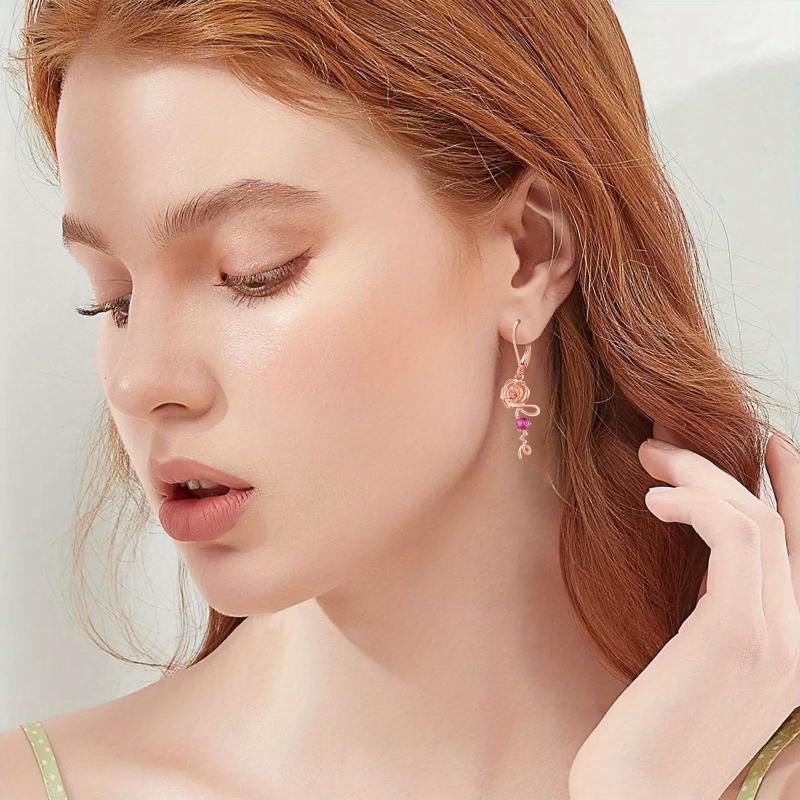 These elegant rose dangle earrings are crafted from 925 sterling silver. Show your love and appreciation with these beautiful love letter earrings. Perfect as a gift for Valentine's Day, Mother's Day, or any special occasion.