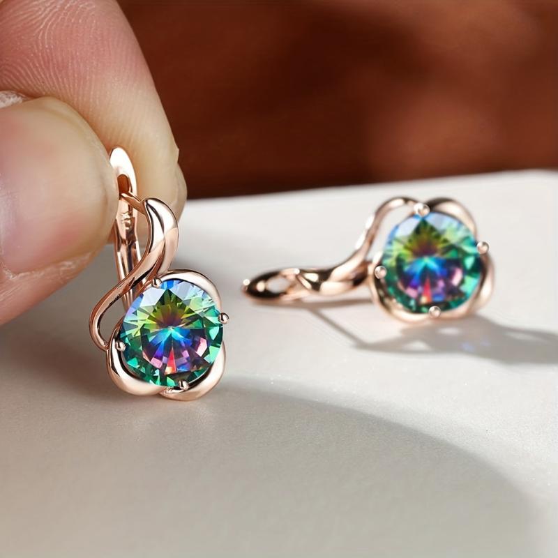 Add a touch of vintage elegance to your wedding look with these rose golden stone earrings. The dangle drop design and hoop ear clip make them a stylish choice for any special occasion.