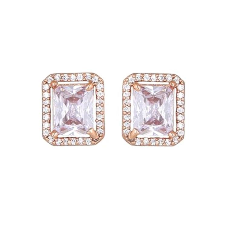 Add a touch of elegance with these rose plated stud earrings featuring sparkling cubic zirconia squares.