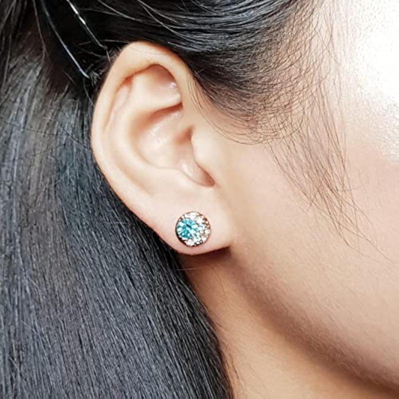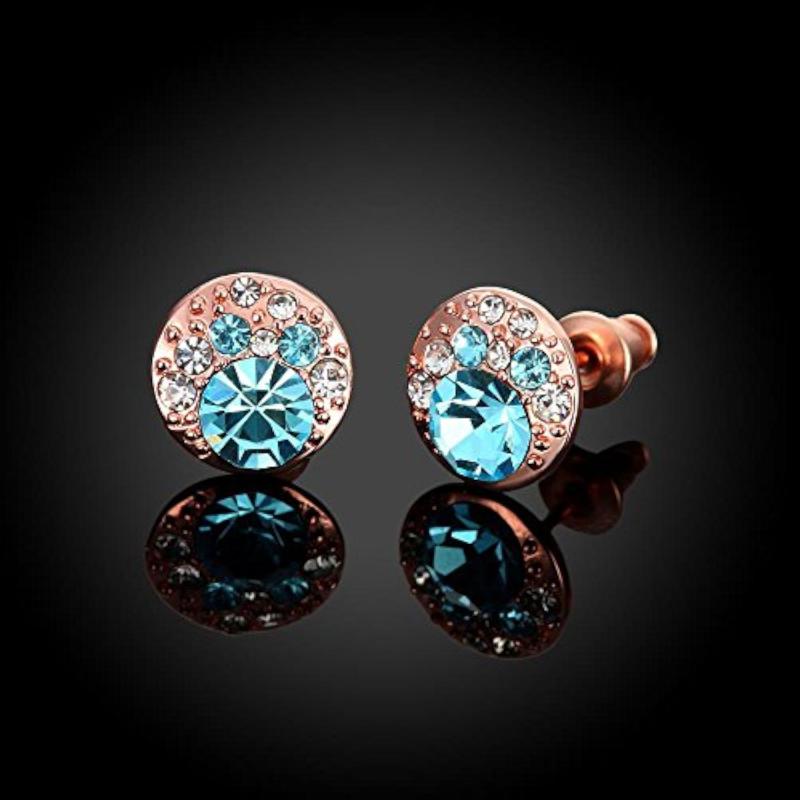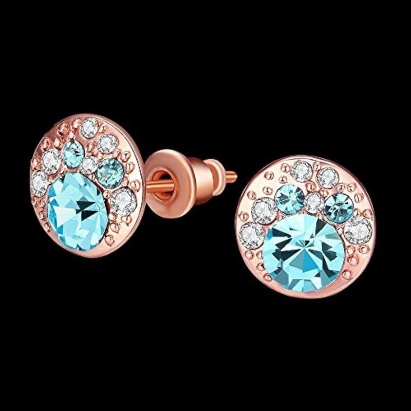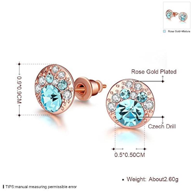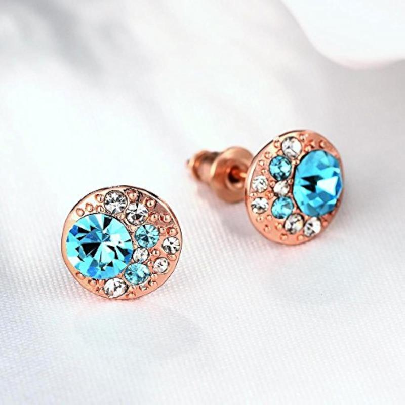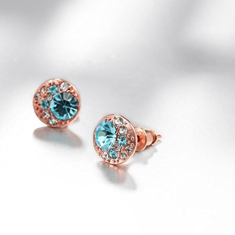 Elegant rose plated earrings adorned with AAA Swiss crystals. Perfect for any occasion.