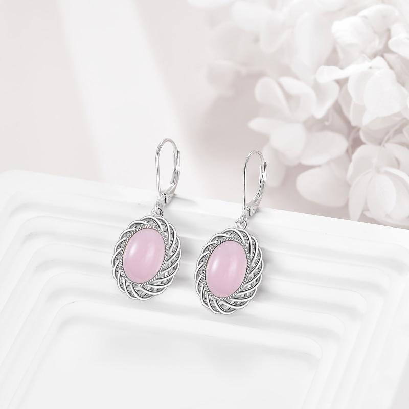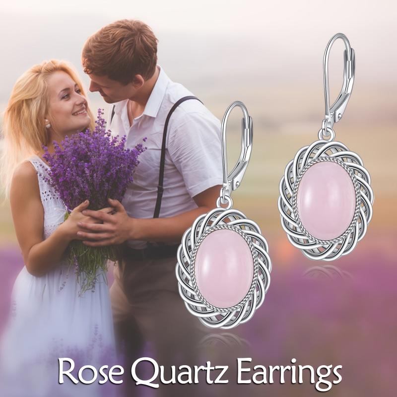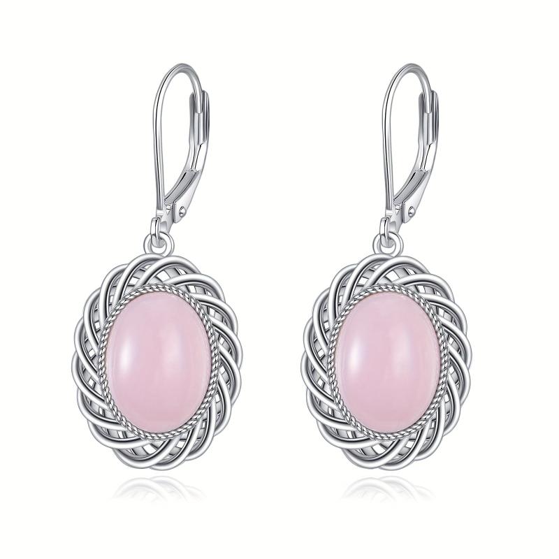 Elegant filigree rose quartz dangle earrings crafted from 925 sterling silver. A perfect vintage-style jewelry piece for women.