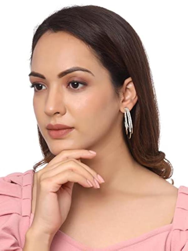 Elegant and stylish hoop earrings featuring rose toned design with crystal studding, perfect for birthdays, anniversaries, or gifting to your wife.