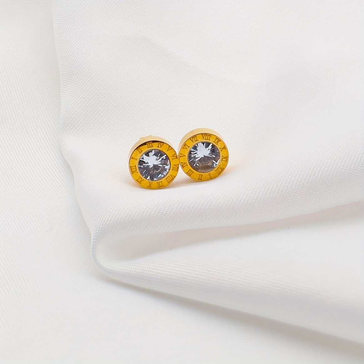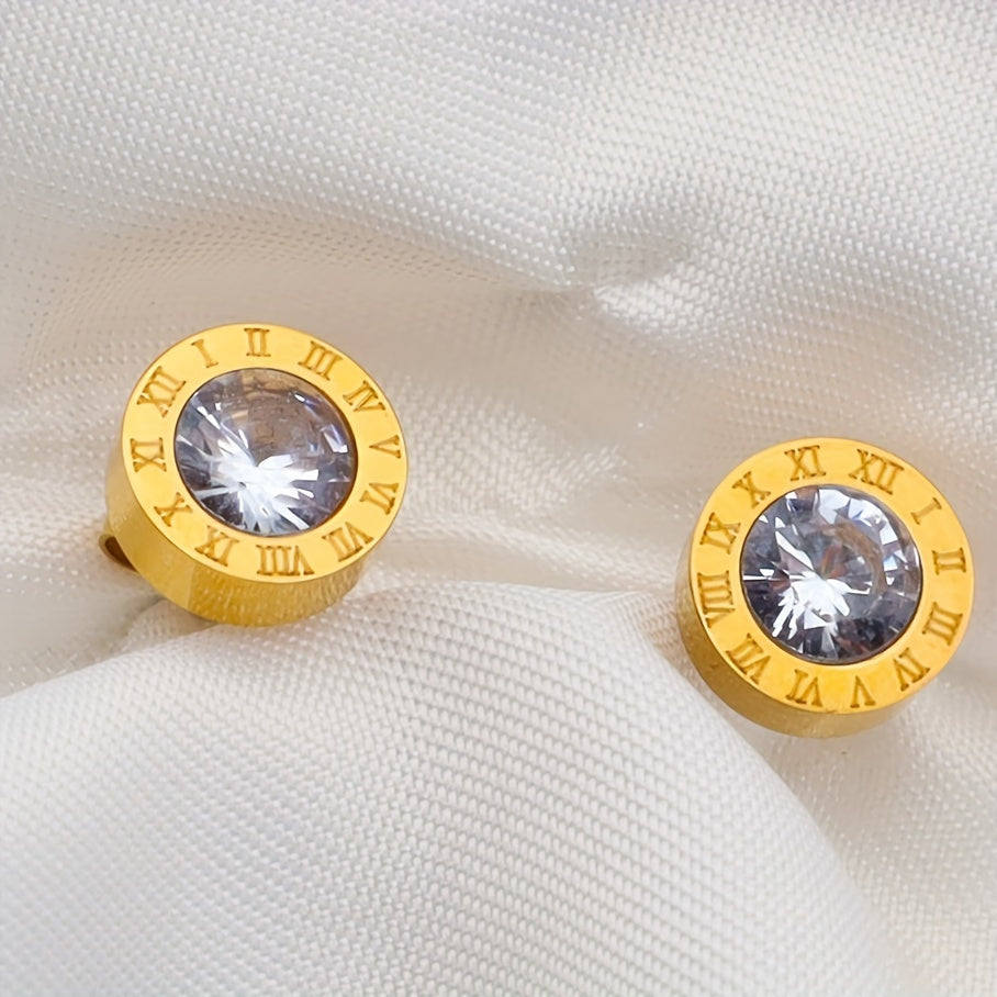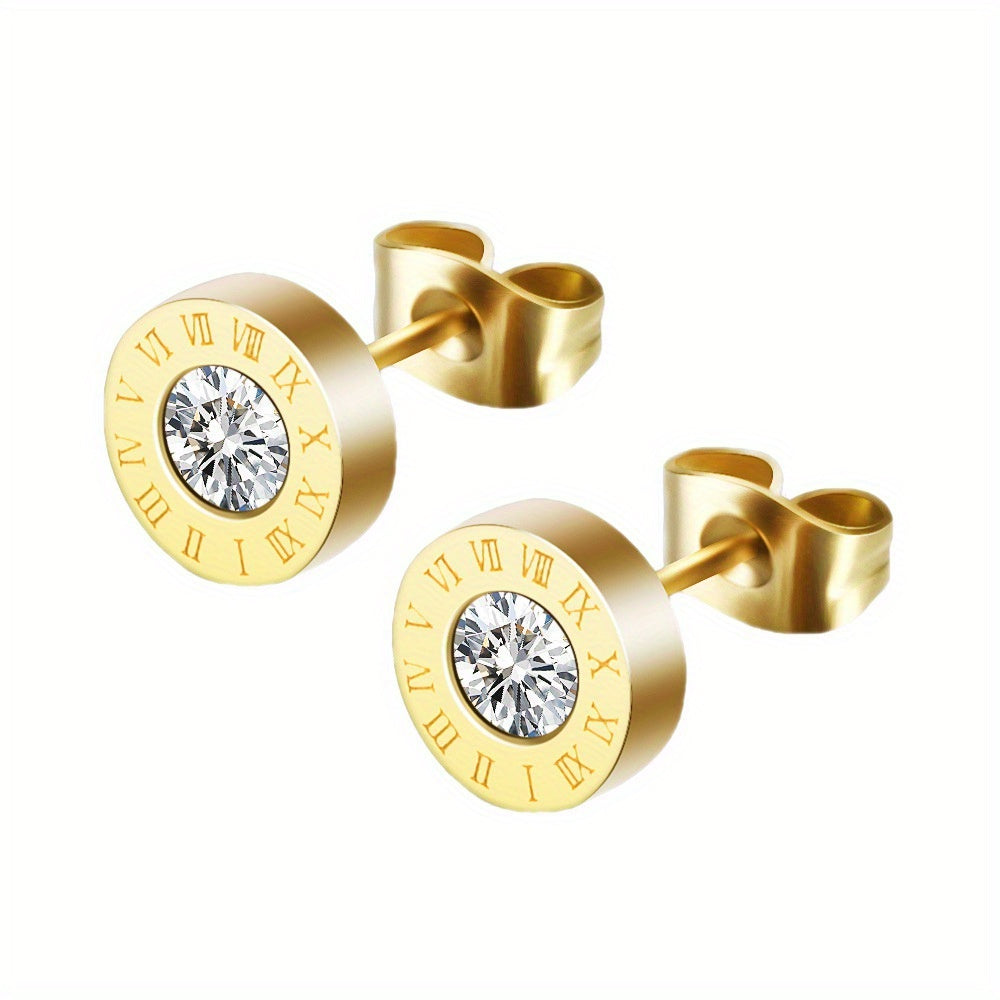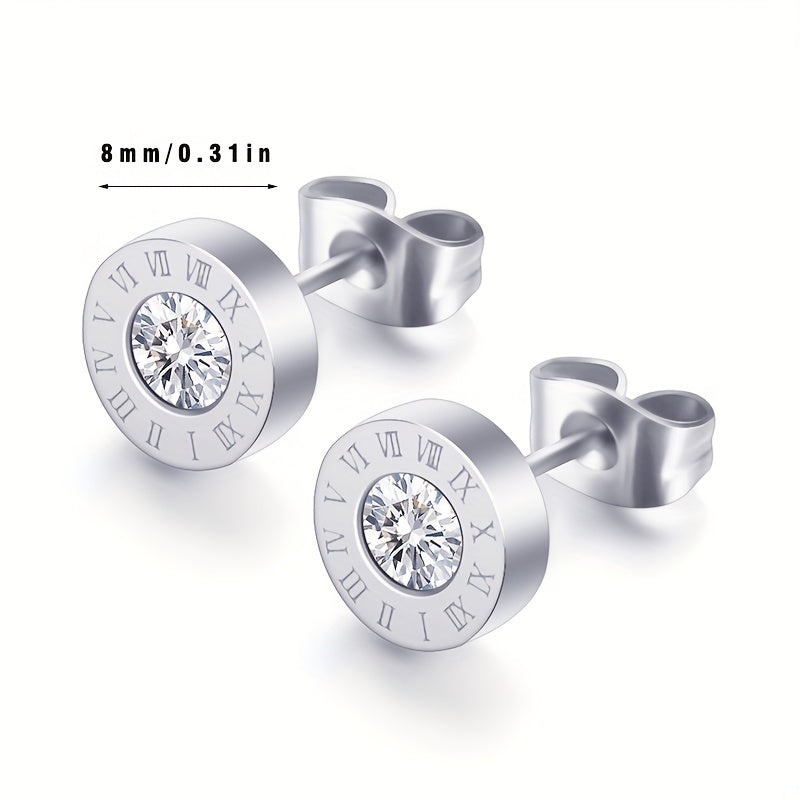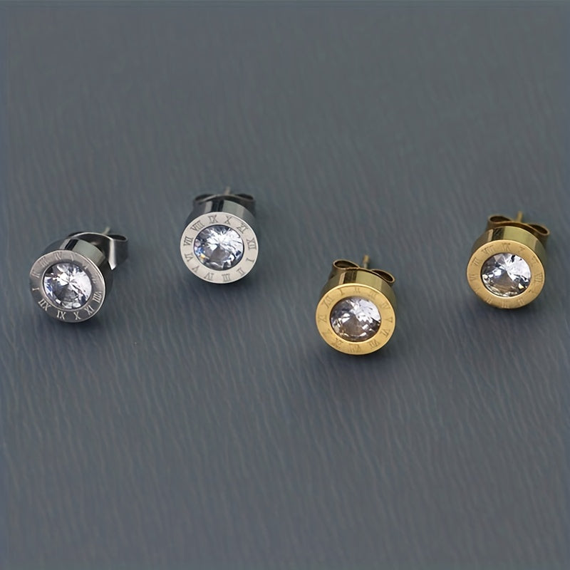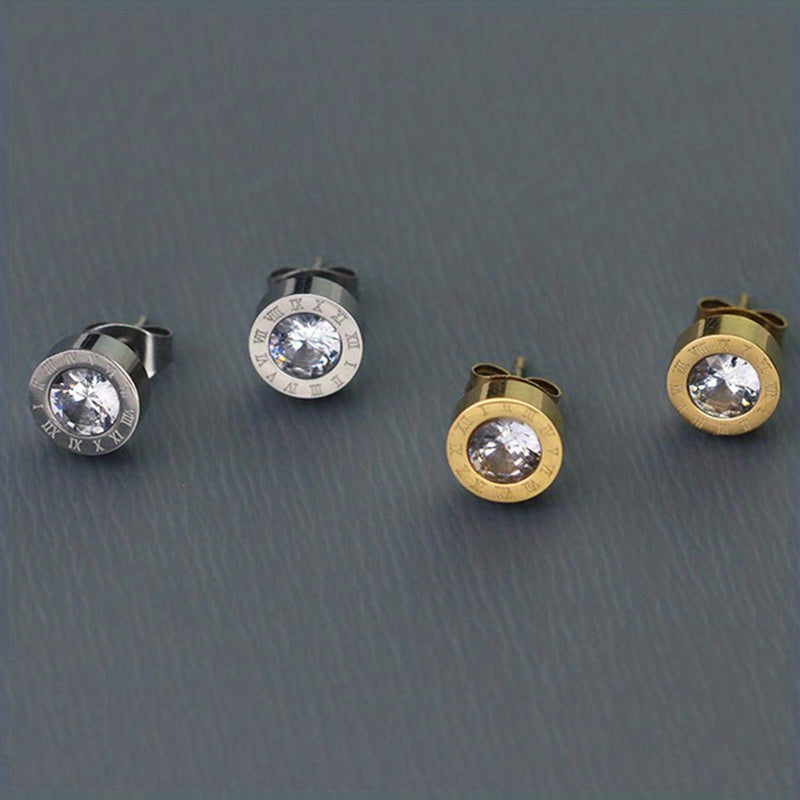 Elegant stud earrings featuring artificial diamond and Roman numeral design, perfect for men's fashion.