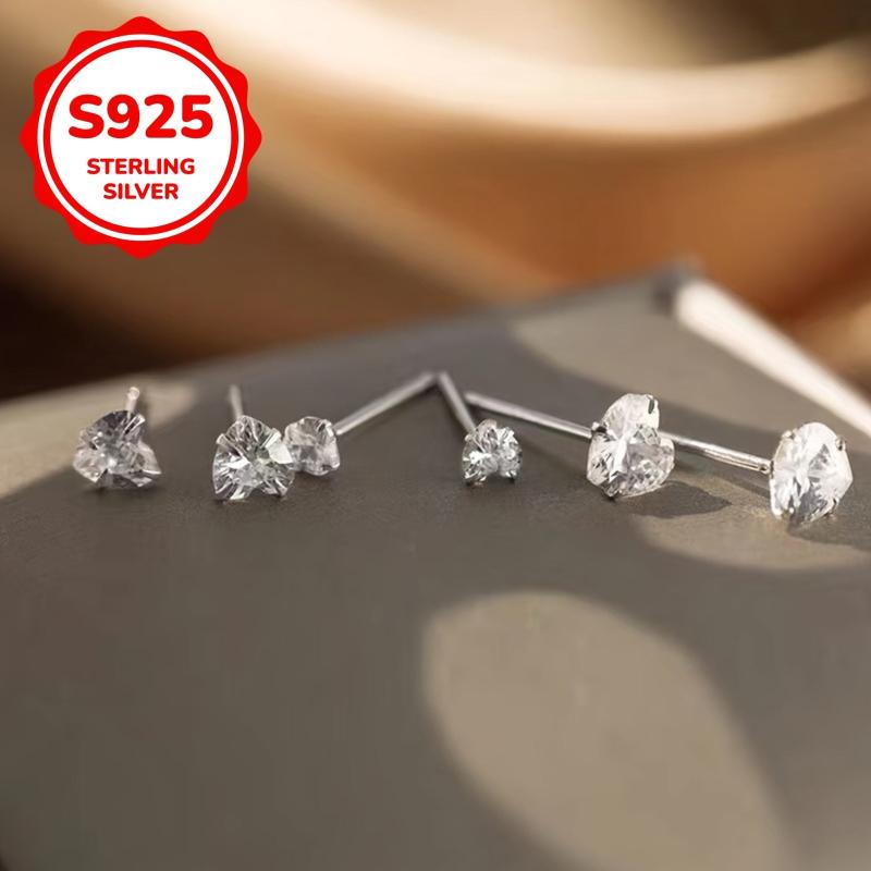 These minimalist stud earrings feature a round bead design adorned with sparkling zirconia stones. They are crafted in high-quality sterling silver and secured with a screw buckle closure.