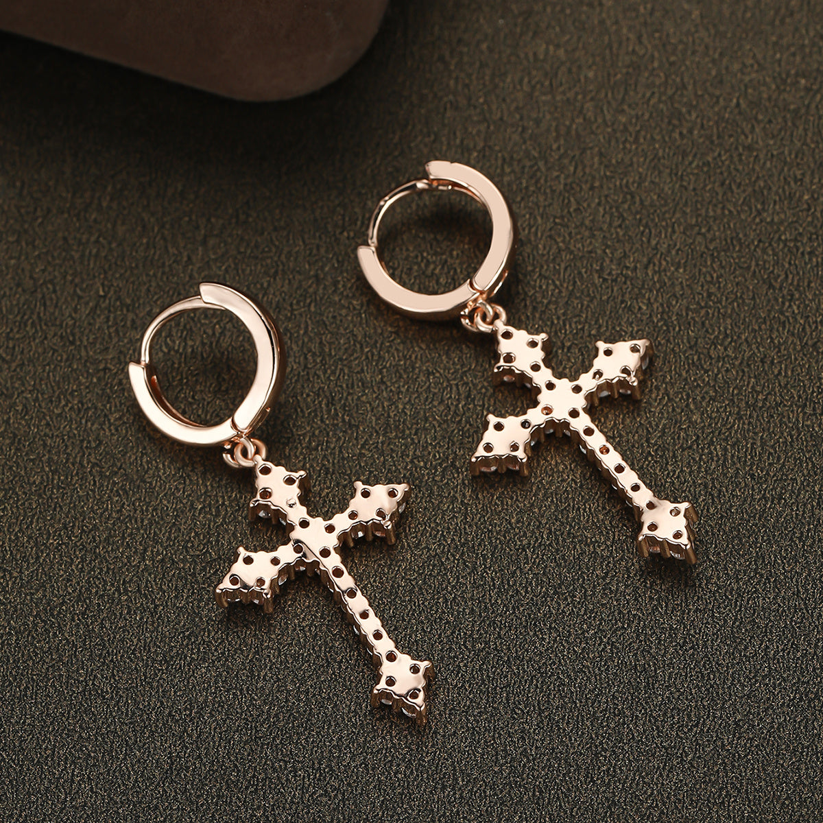 These elegant earrings feature round cut zircon stones in a cross design. Perfect for brides, weddings, or engagements.