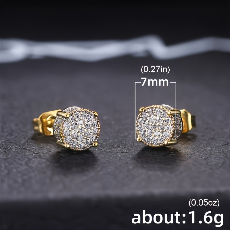 Add a touch of elegance to your look with these round shaped stud earrings featuring CZ stones. Perfect for everyday wear, these versatile earrings are suitable for men and women.