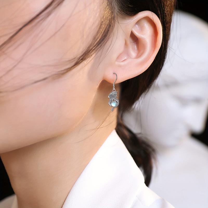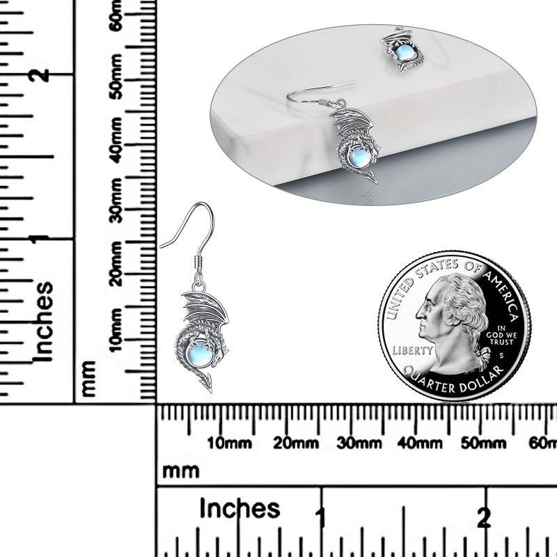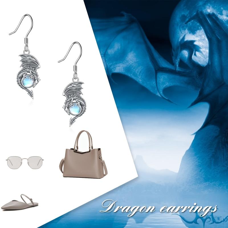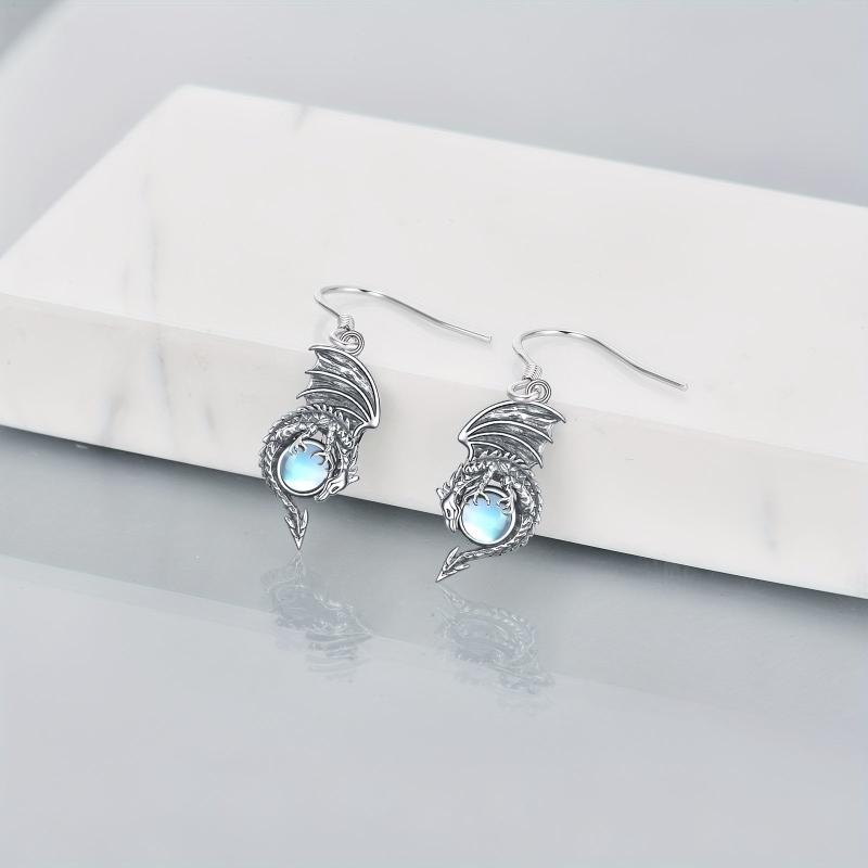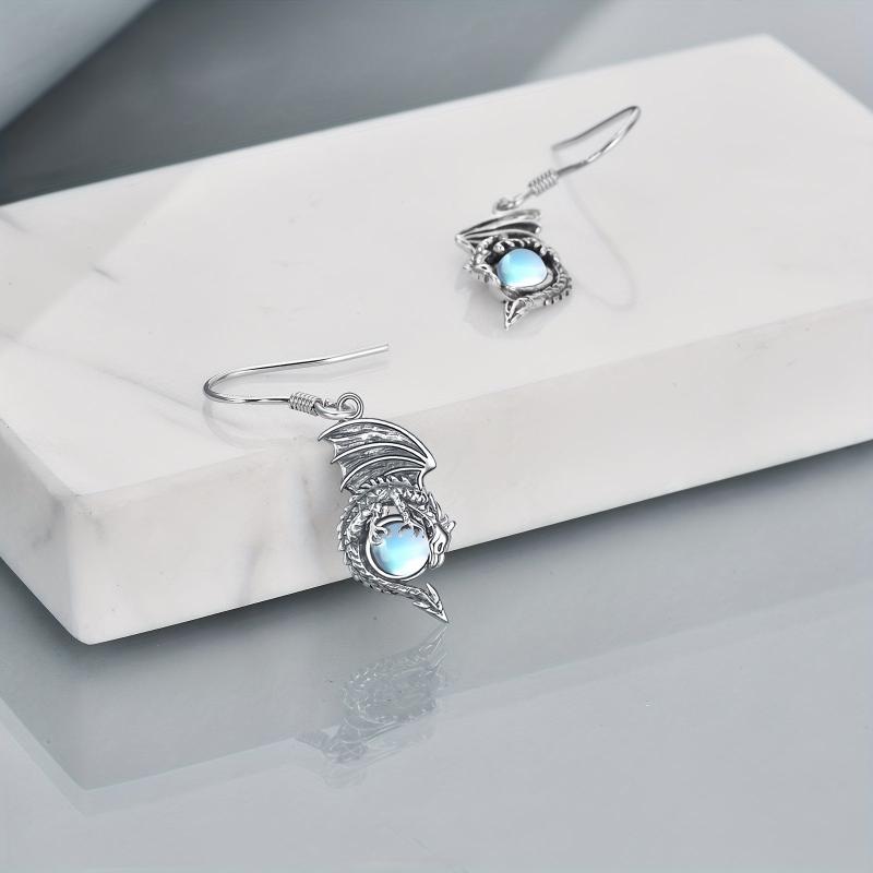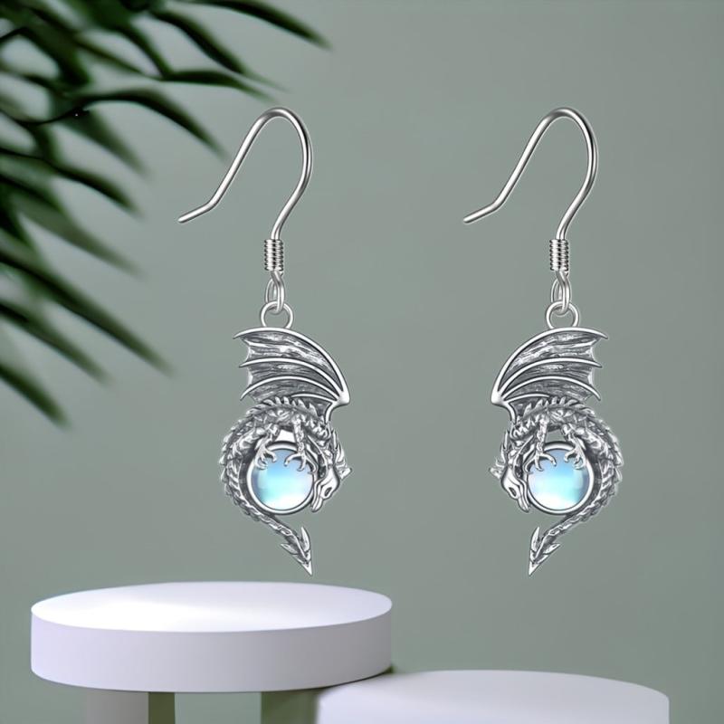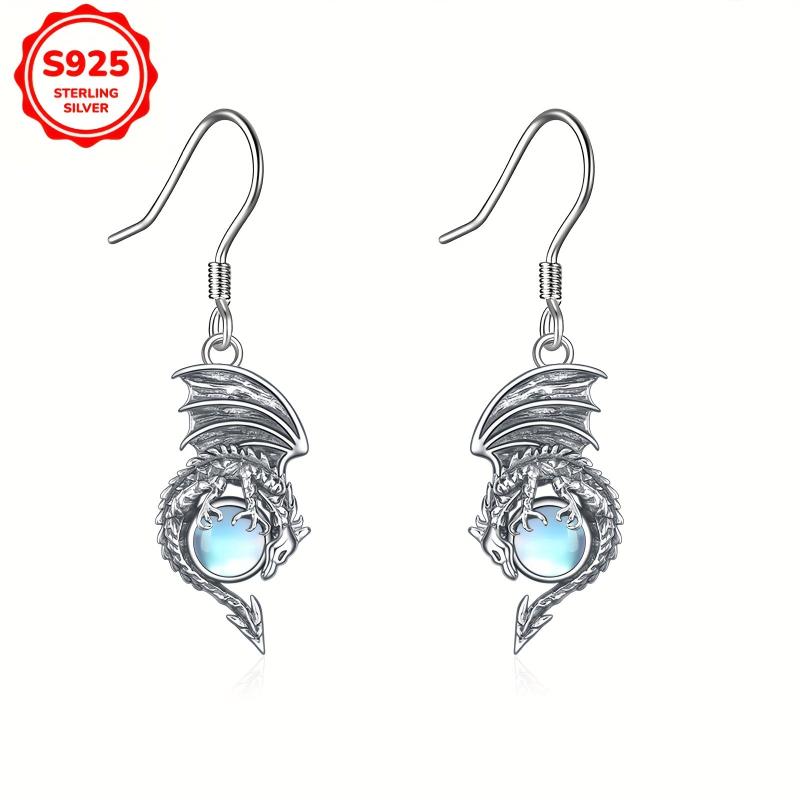 These stunning S925 sterling silver earrings feature a legendary Chinese dragon design with moonstone accents. Perfect for women and men who appreciate intricate and unique jewelry.