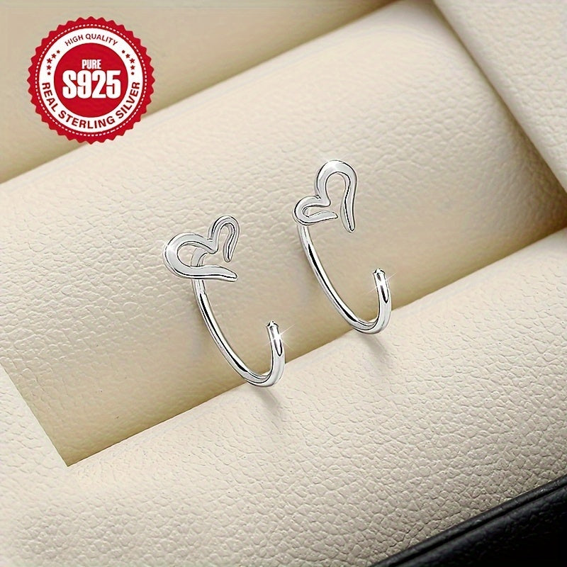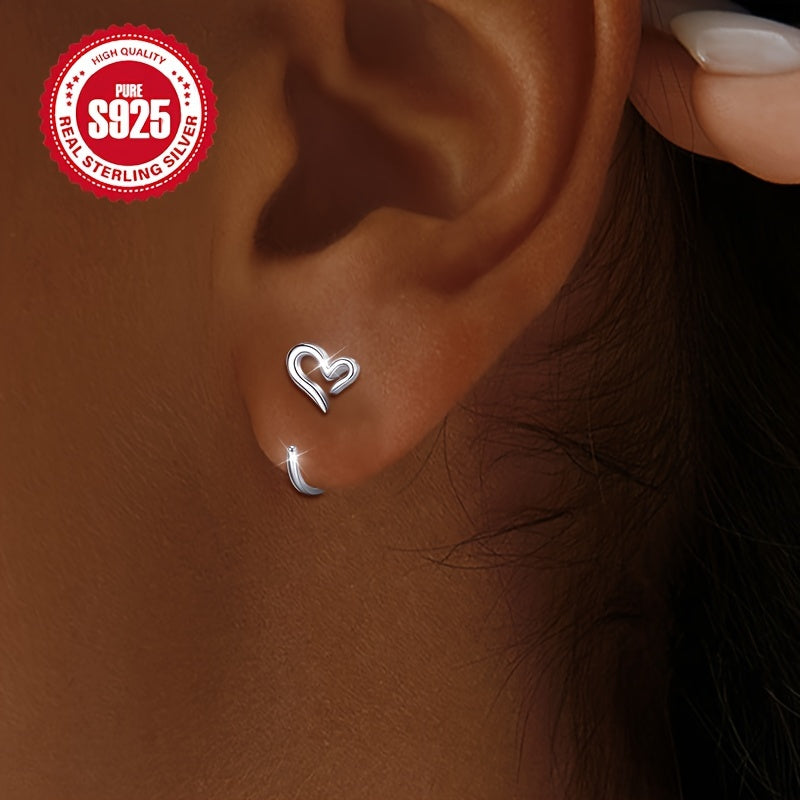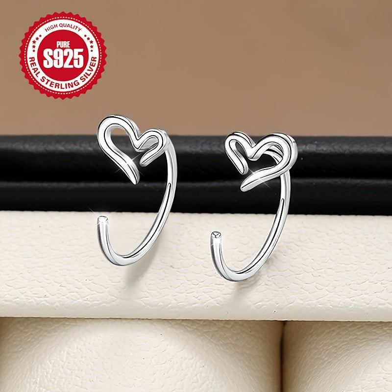 These S925 sterling silver heart-shaped hollow hoop earrings are perfect for daily wear and gift giving. Lightweight at 1g, they are hypoallergenic and an ideal accessory for Halloween.