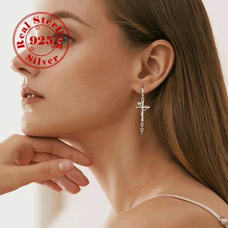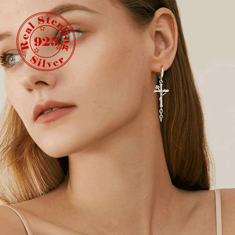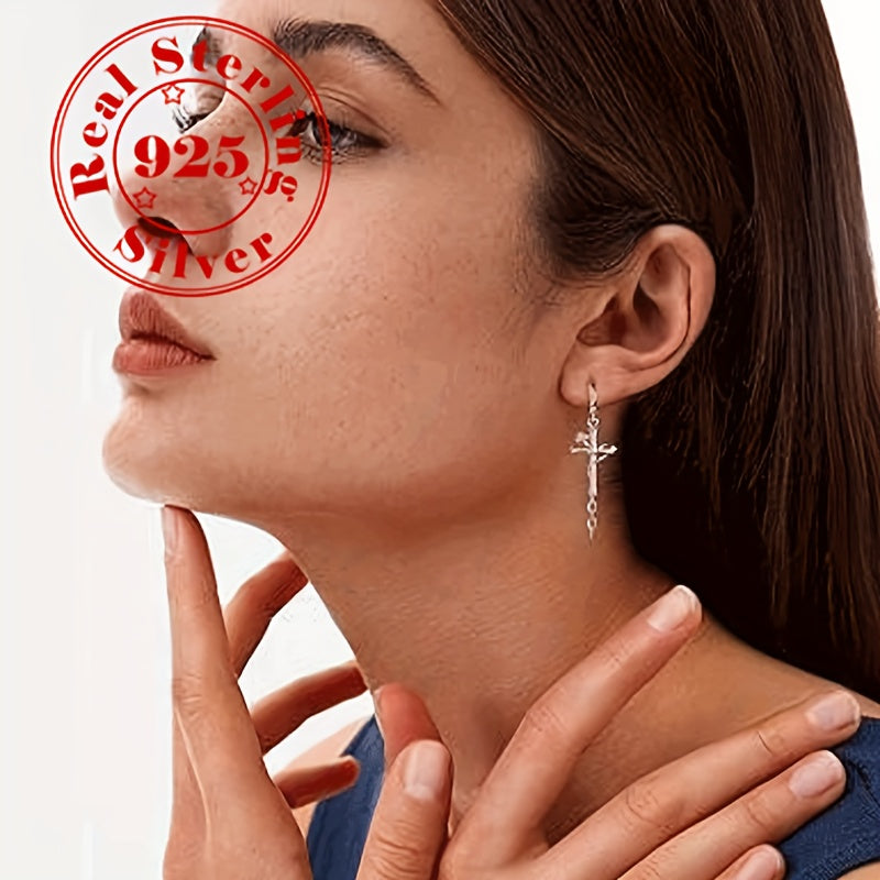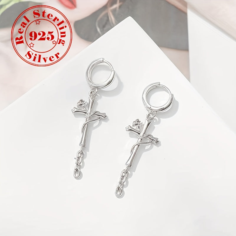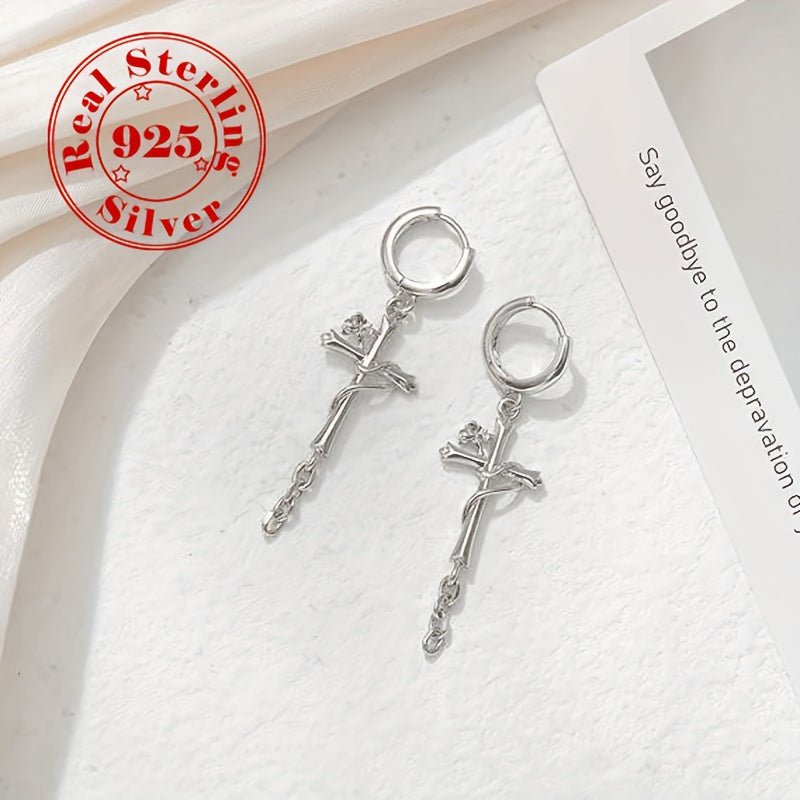 Beautiful S925 pure silver earrings featuring a fashionable design with a flower cross, perfect for daily wear. Low allergy silver weight 3, ideal for girls as a gift.