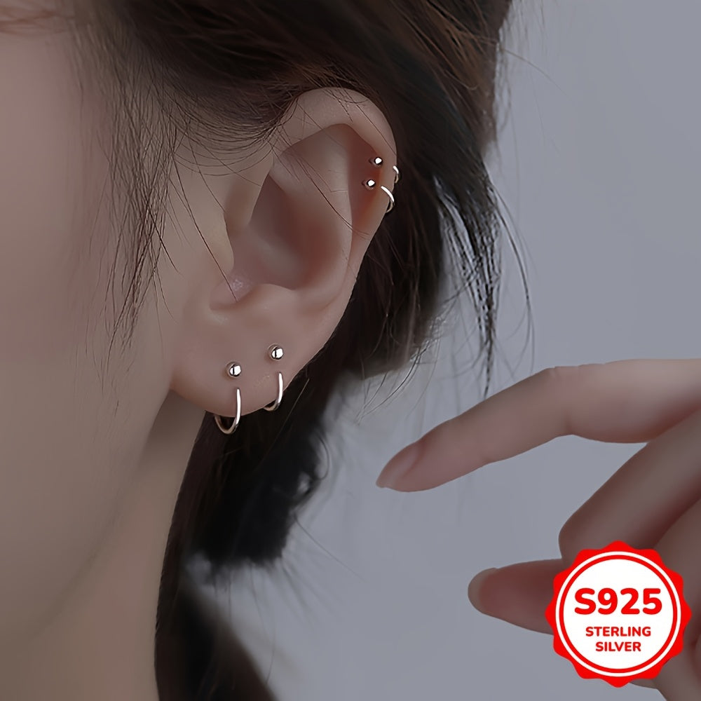 Add a touch of elegance to your outfit with these versatile round bead earrings. Made of pure silvery S925 material, these earrings are perfect for everyday wear.