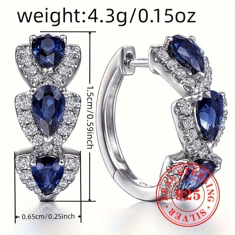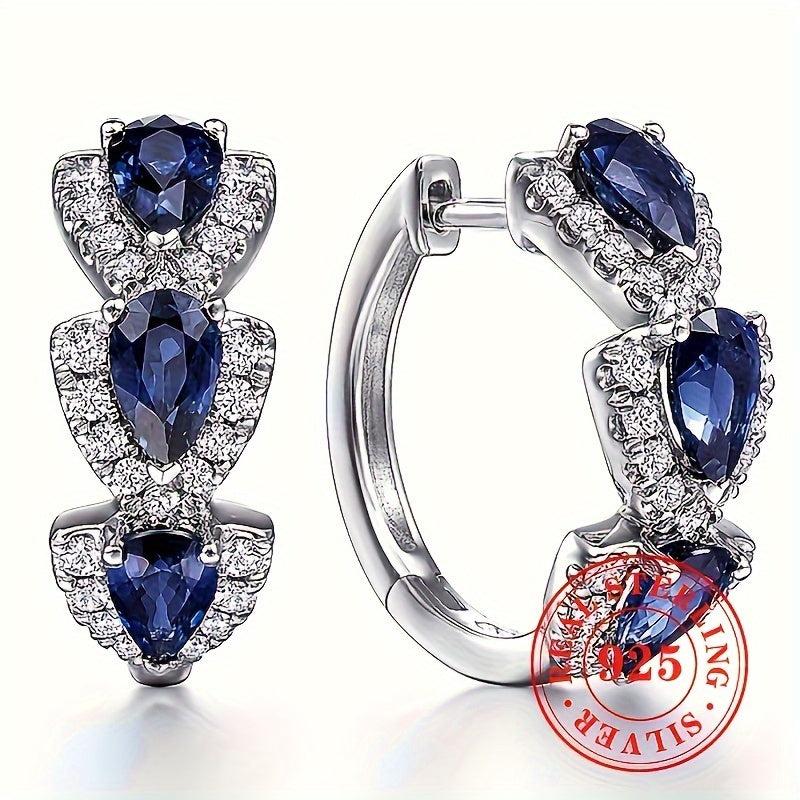 Elegant and beautiful circle earrings featuring artificial sapphire inlays on pure silvery base. Perfect for brides, engagements, and weddings.
