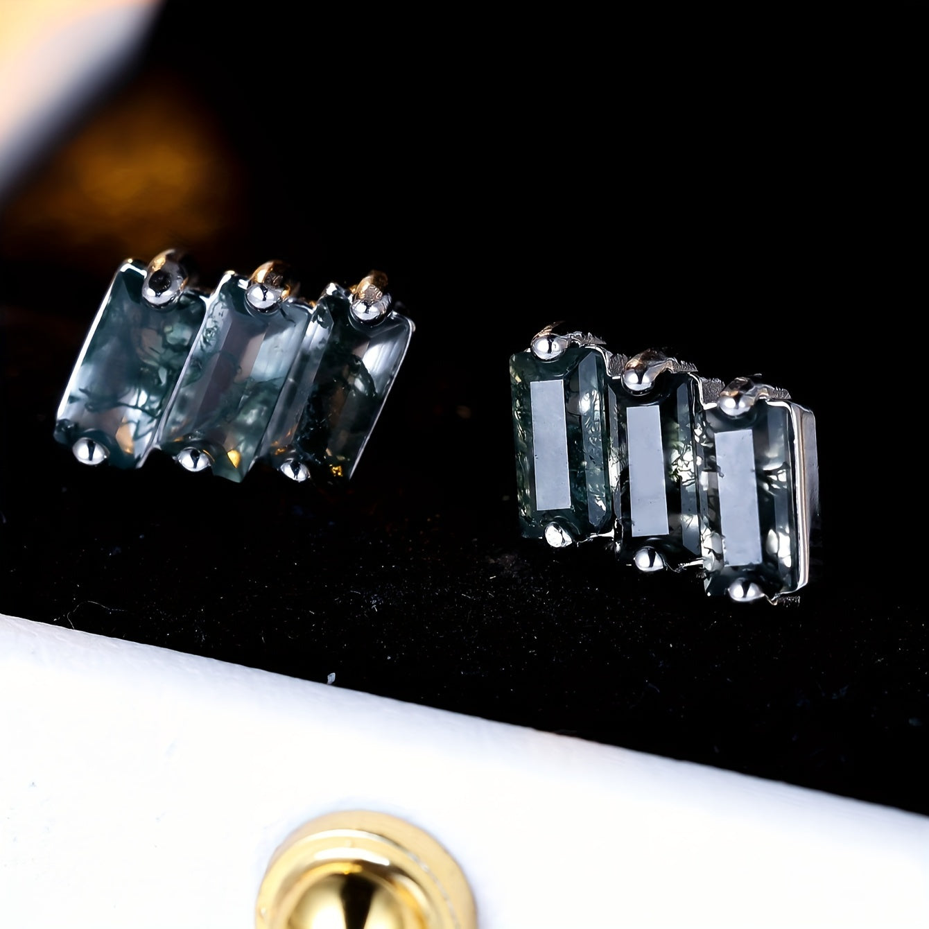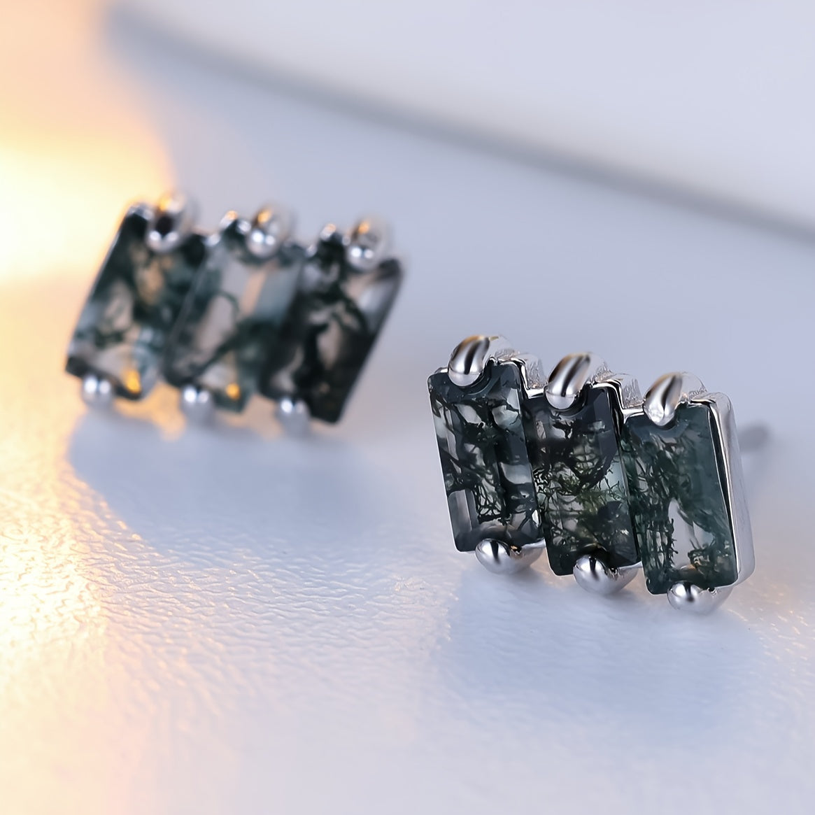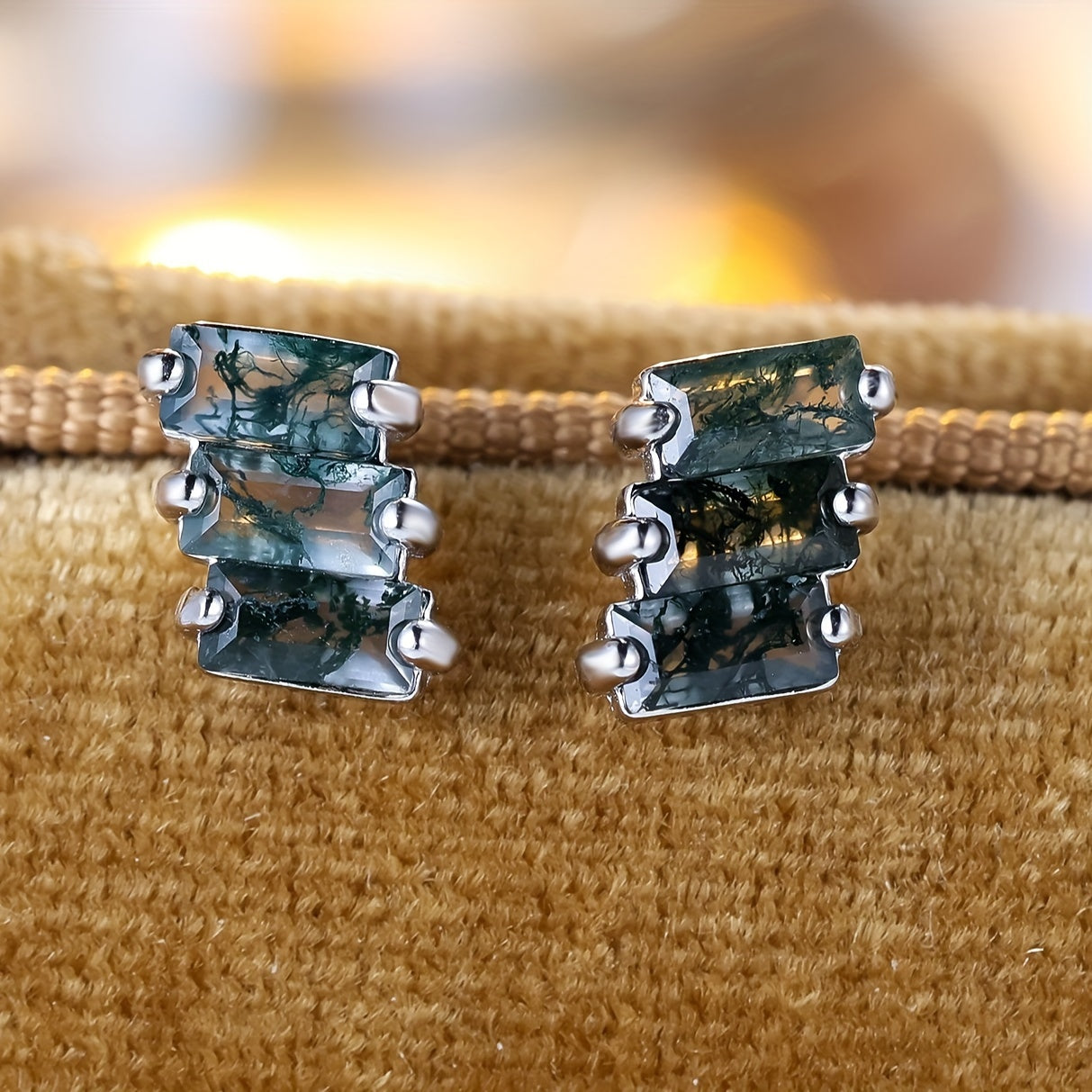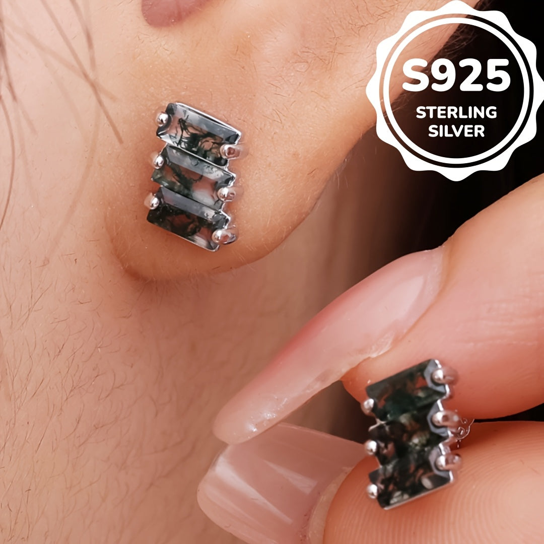 These elegant earrings feature an irregular square water grass agate design that adds a touch of sophistication to any outfit. Made from pure 925 sterling silver, they are perfect for daily wear or special occasions.