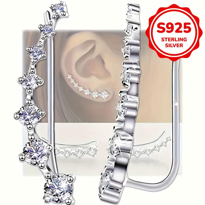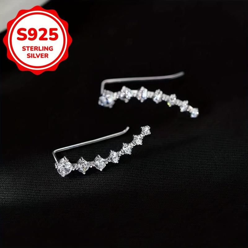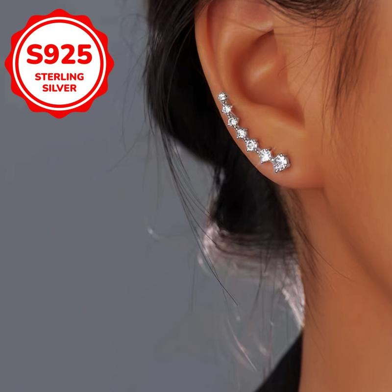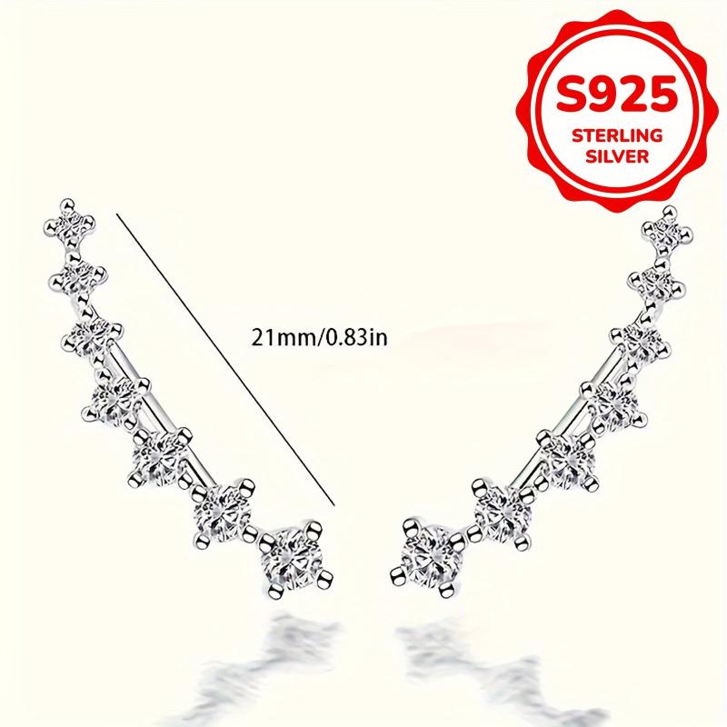 This pair of S925 silver earrings feature a fashionable design with 7 stars inlaid with synthetic zirconia. They are suitable for daily wear and party matching, weighing approximately 3g.