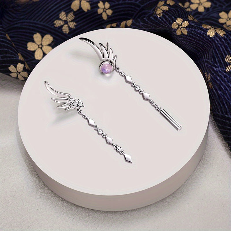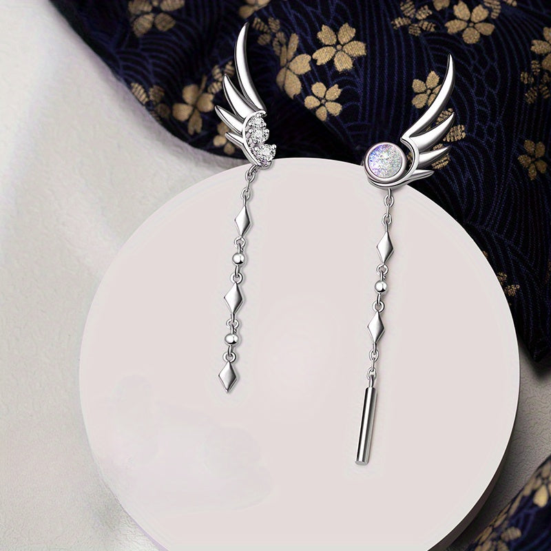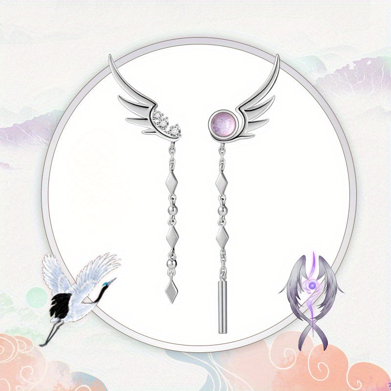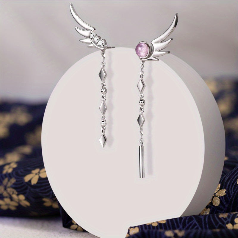These S925 silver angel wings earrings are designed in a long, retro style that is perfect for any occasion. Made of pure silver, they are allergy-free and stylish, making them a great gift for your girlfriend.
