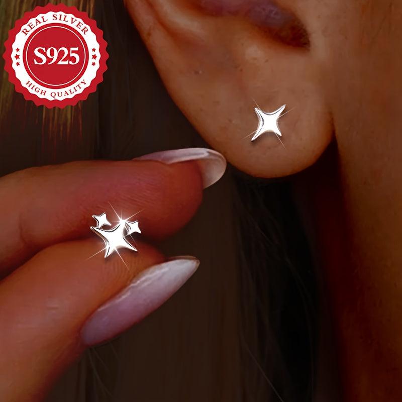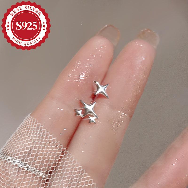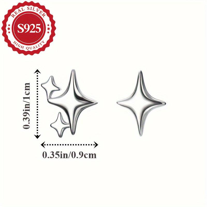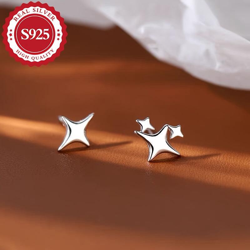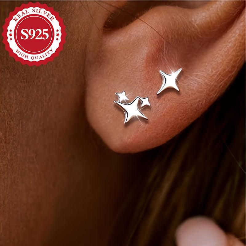 These stylish S925 silver earrings feature an asymmetric star design. Perfect for daily wear, they are hypoallergenic and lightweight at 1g.