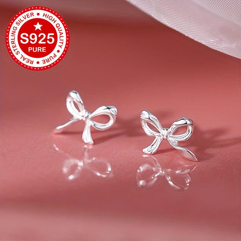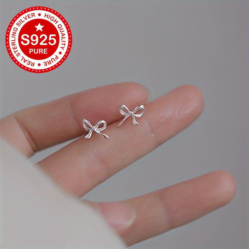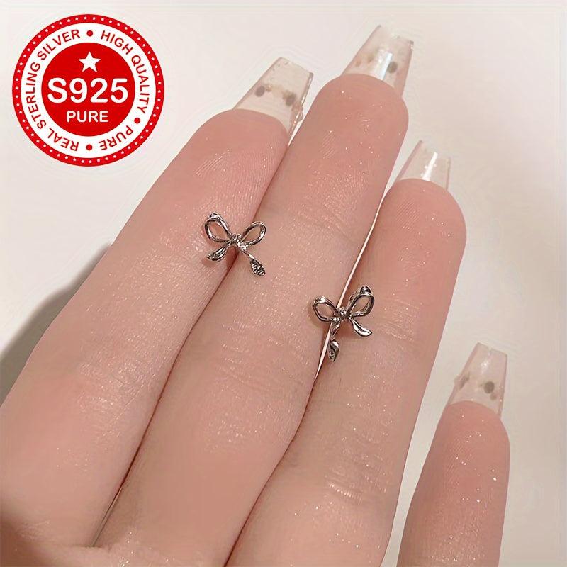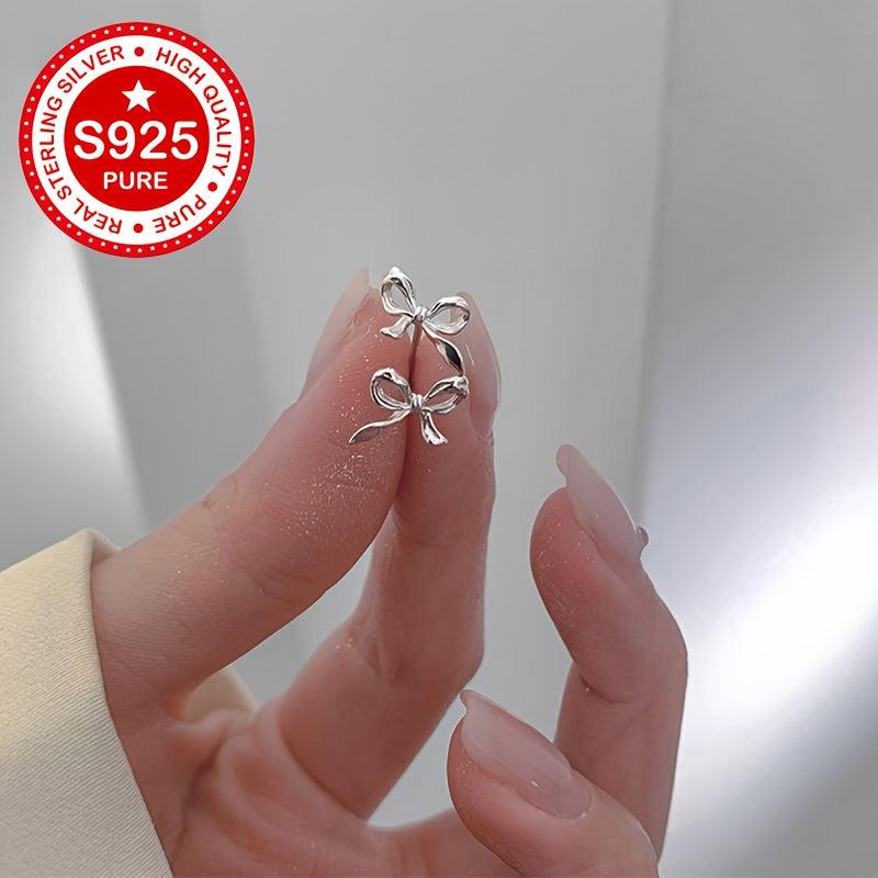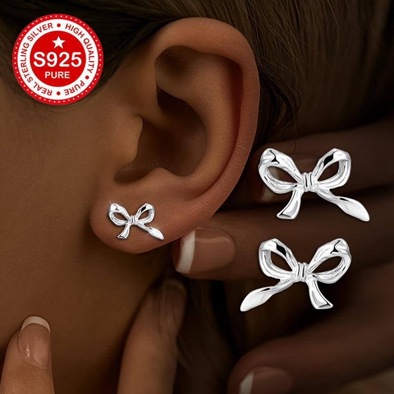 Elevate your style with these chic S925 silver bowknot stud earrings perfect for daily wear. The unique and minimalist design adds a touch of elegance to any outfit.