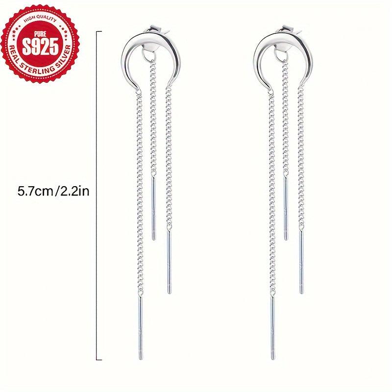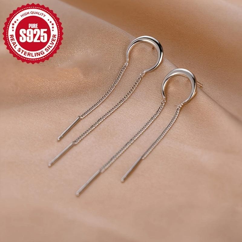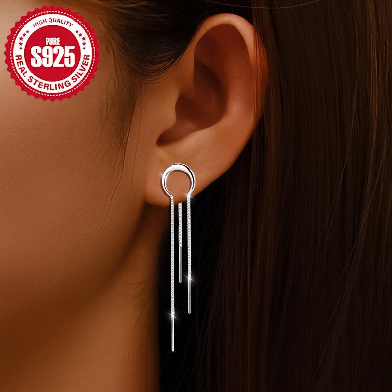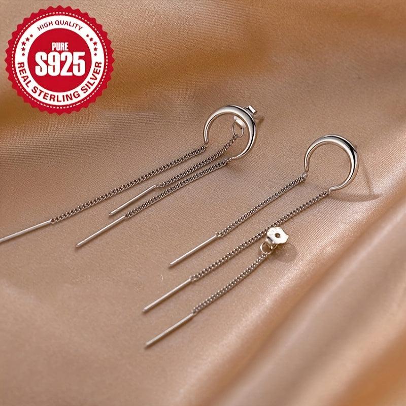 Exquisite S925 silver half round chain tassel earrings that are stylish and versatile. Ideal for daily wear or parties, these earrings are low allergy and eye-catching.