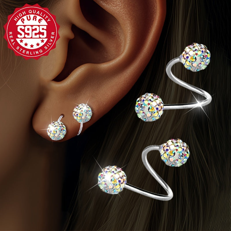 These hoop earrings feature colorful sphere studs and are made of hypoallergenic S925 sterling silver. They are lightweight and perfect for everyday wear.