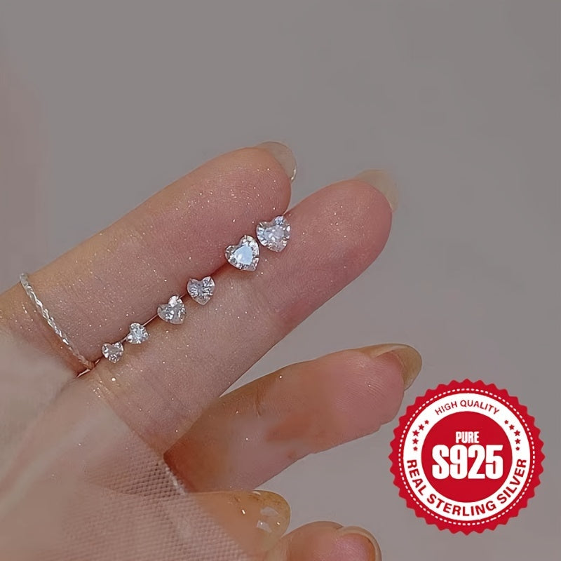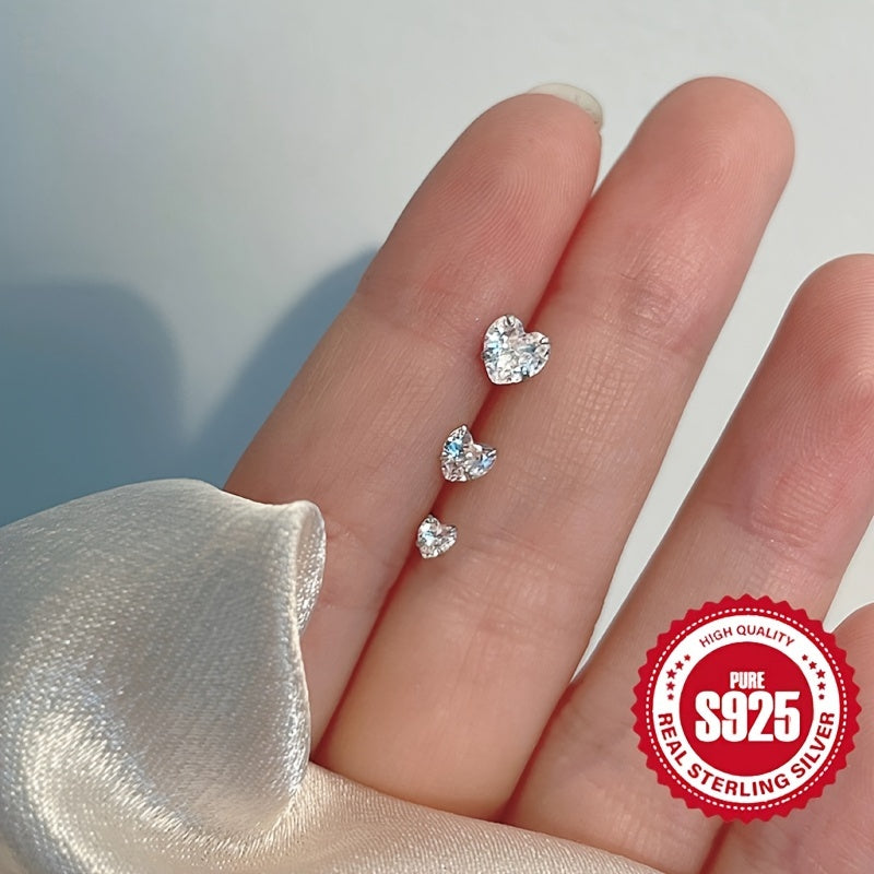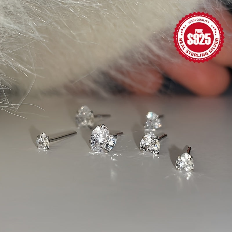 Elegant S925 silver ear studs with synthetic zirconia stones, perfect for women with sensitive skin. Available in 0.3g, 0.4g, and 0.5g weights.