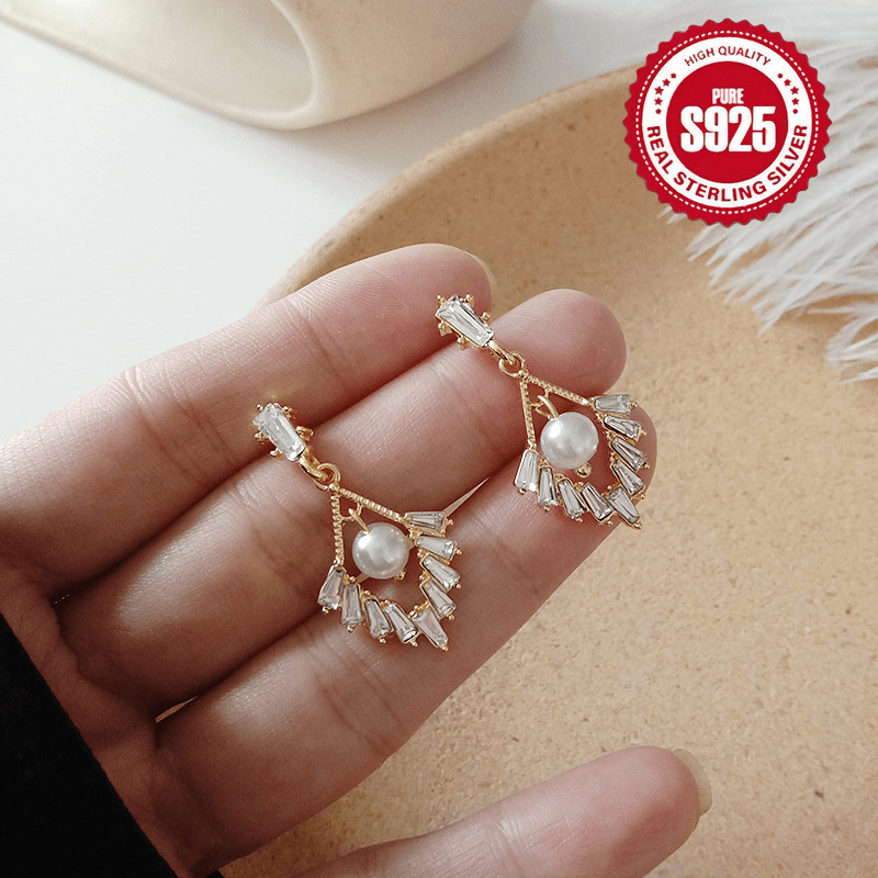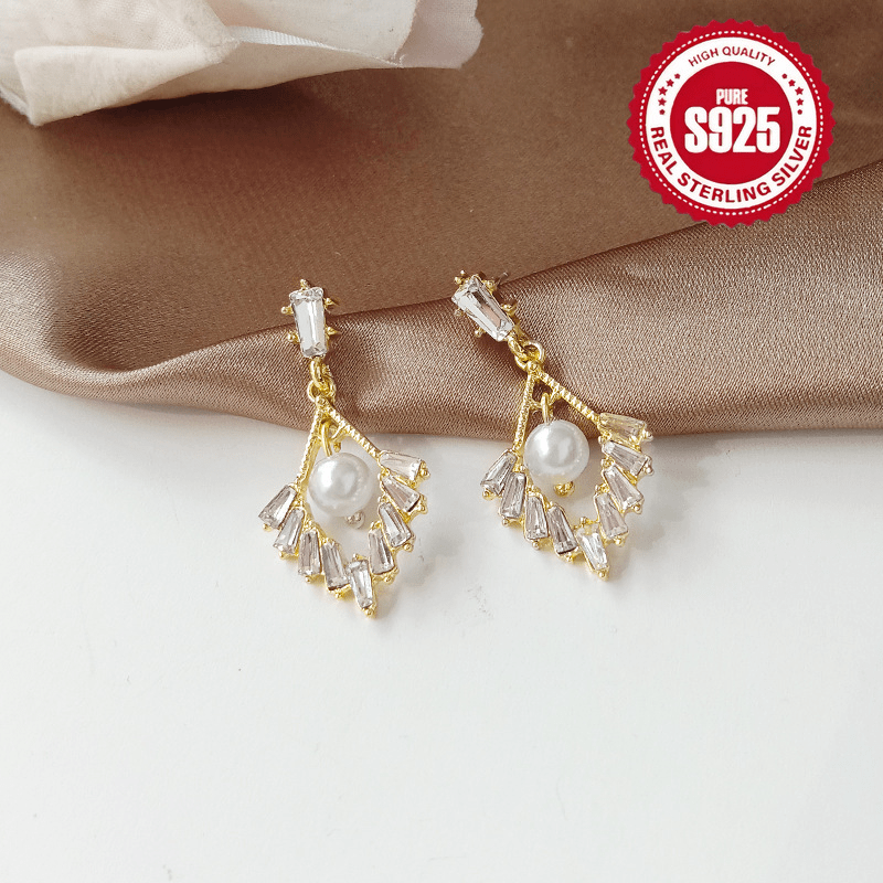 Elevate your style with this set of irregular and minimalist earrings crafted from S925 silver adorned with micro zirconia pearls. Perfect for adding a touch of elegance to any outfit.
