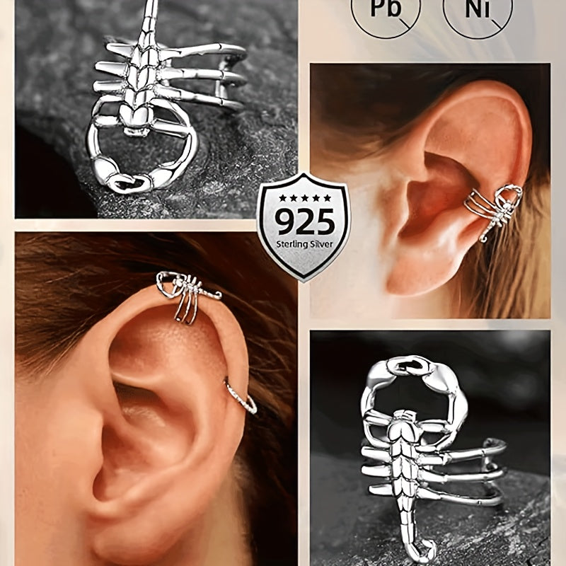 Add a touch of edgy style with these S925 silver scorpion clip-on earrings. Perfect for everyday wear and ideal as a thoughtful gift. No piercings needed thanks to the clip-on style.