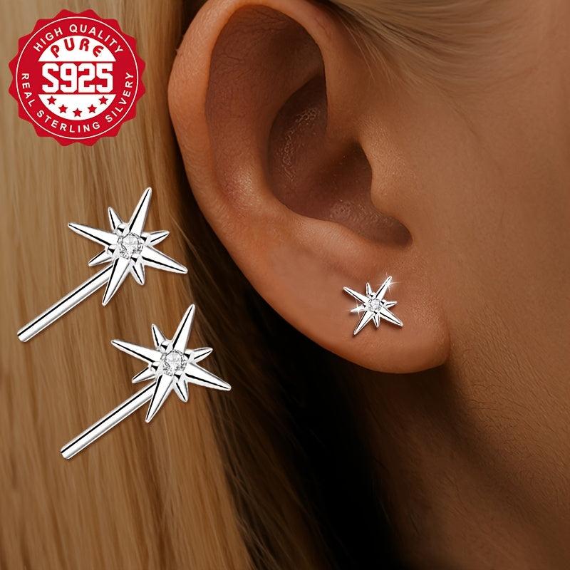 Add some dazzle to your look with these hip hop style star earrings. Perfect for parties or daily wear, they feature synthetic zirconia on a silver base.