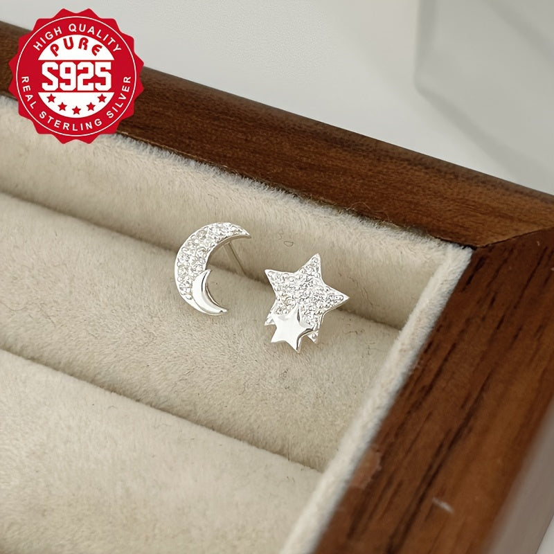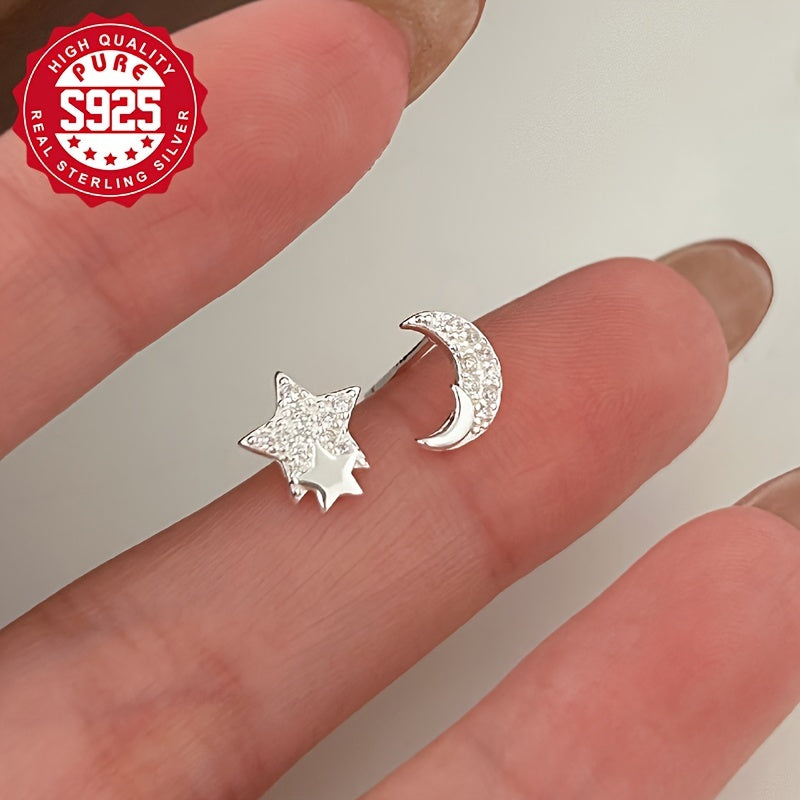 These stud earrings are designed for women with a fashionable asymmetrical style. They feature sparkling synthetic zirconia for a delicate and elegant look.
