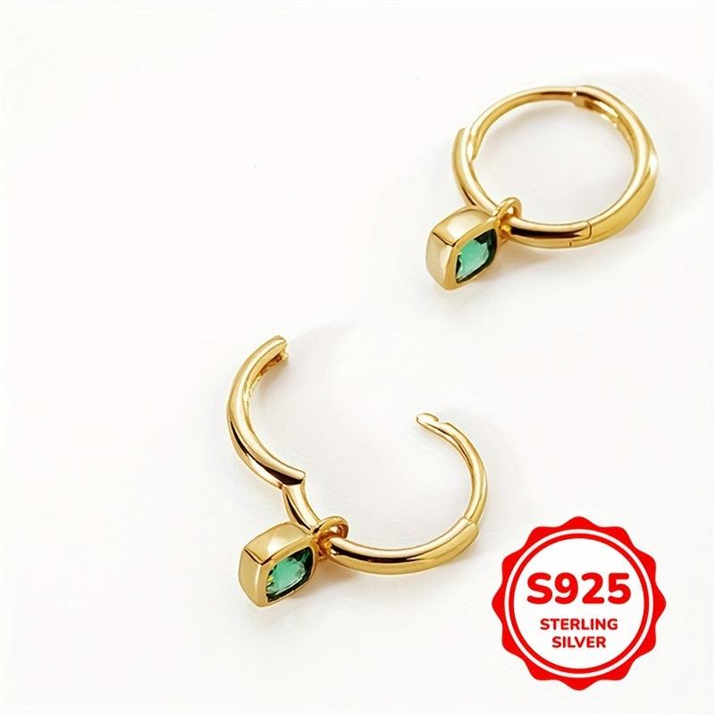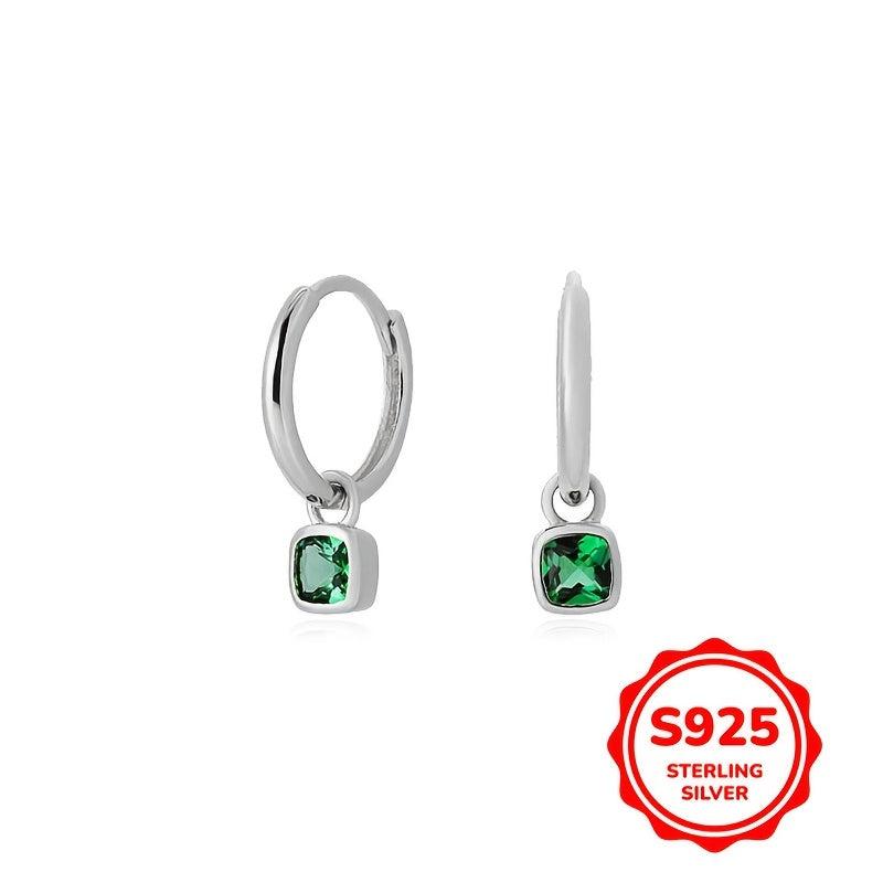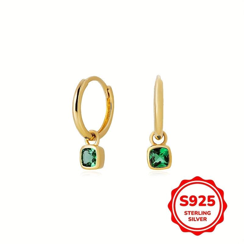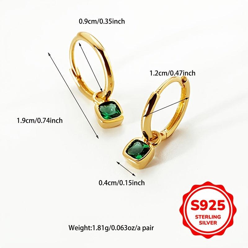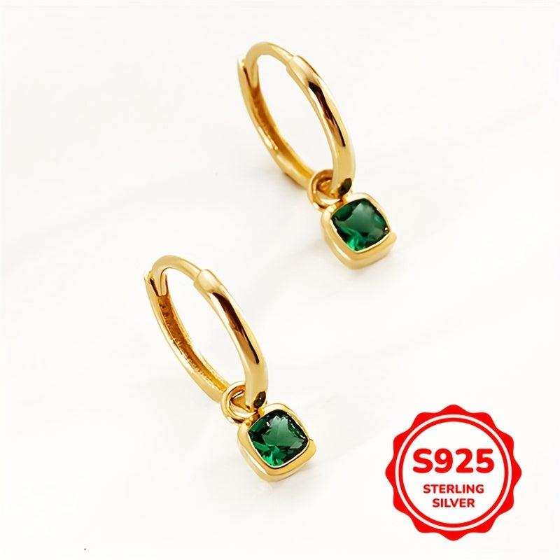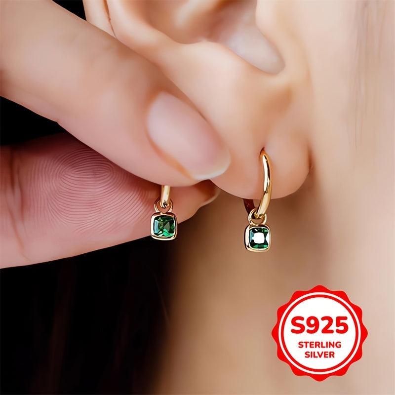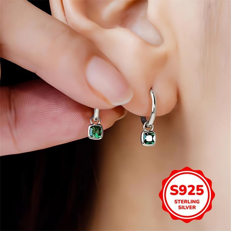 These stunning S925 sterling silver earrings feature a vintage design with geometric green square synthetic zirconia dangles. Perfect as a jewelry gift.
