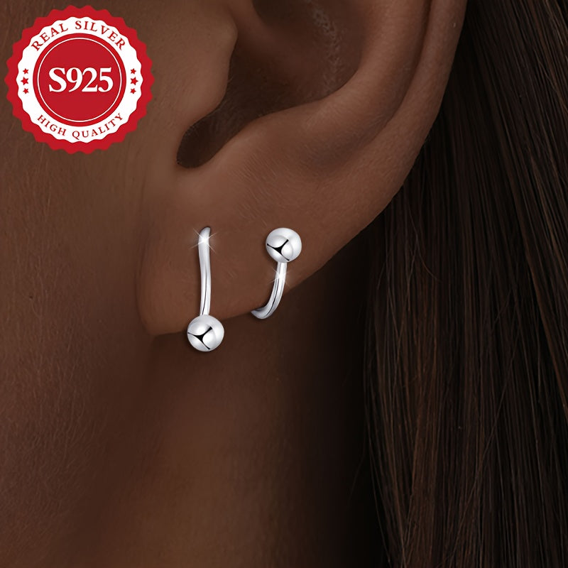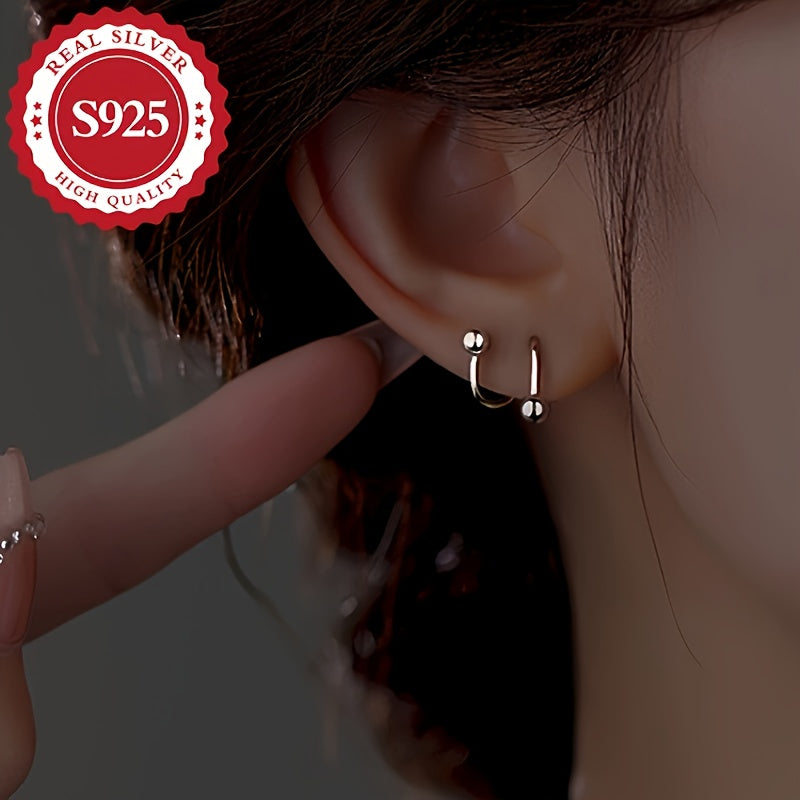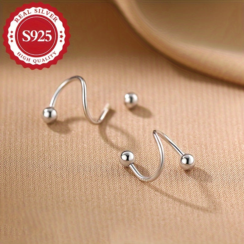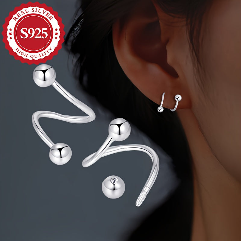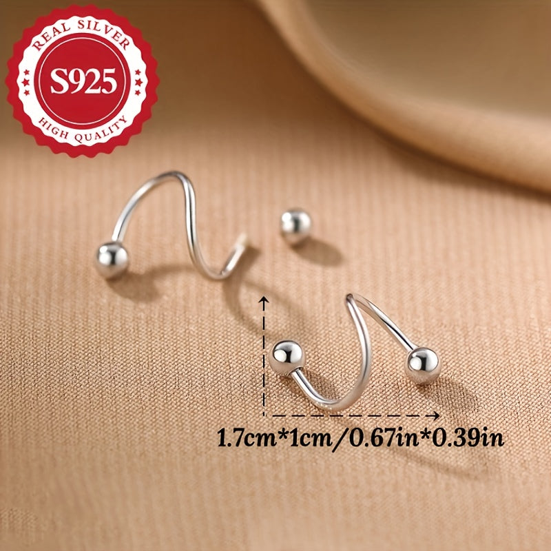 These elegant earrings feature a surrounding design with two round beads on a spring. The screw S-shaped buckle ensures secure wearing. Suitable for various occasions.