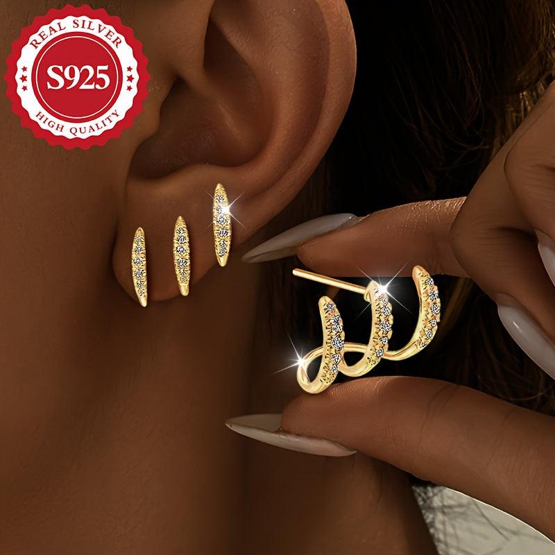 These stunning S925 silver earrings feature synthetic zirconia stones in claw setting, giving them a dazzling and blingbling look. They are perfect for various occasions and make a great gift due to their low allergy properties. Each earring weighs 2g.