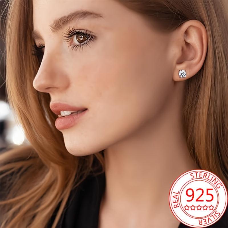Elegant and fashionable S925 silver synthetic Zirconia ear bone studs with four prong round bead thread female screw buckle design.