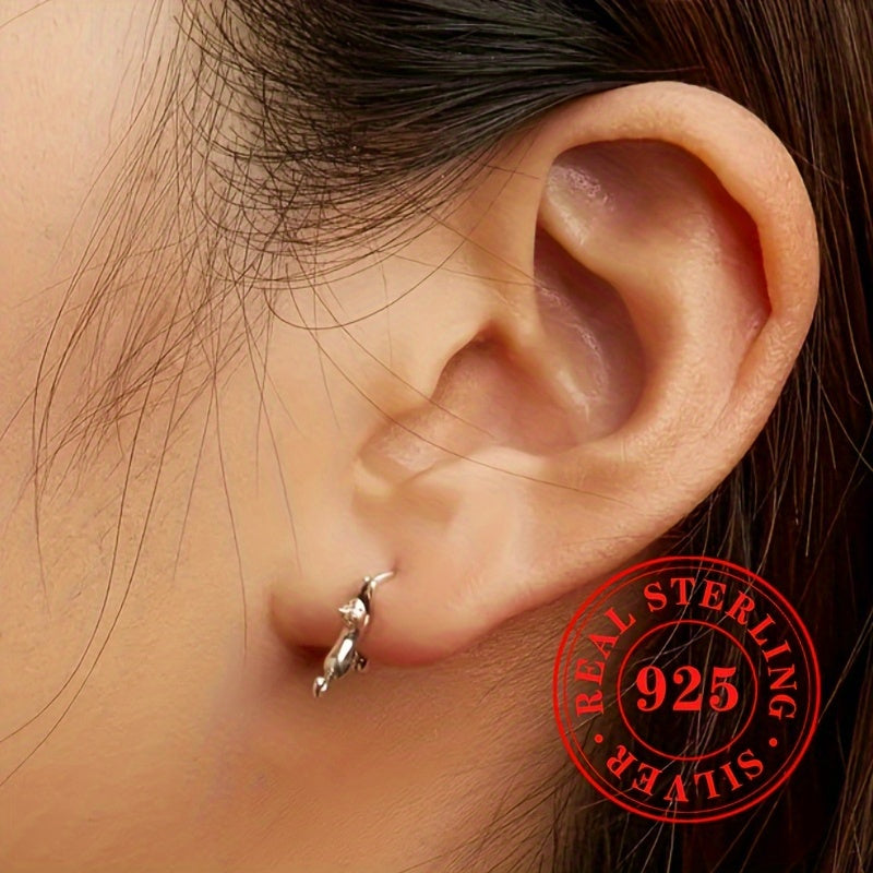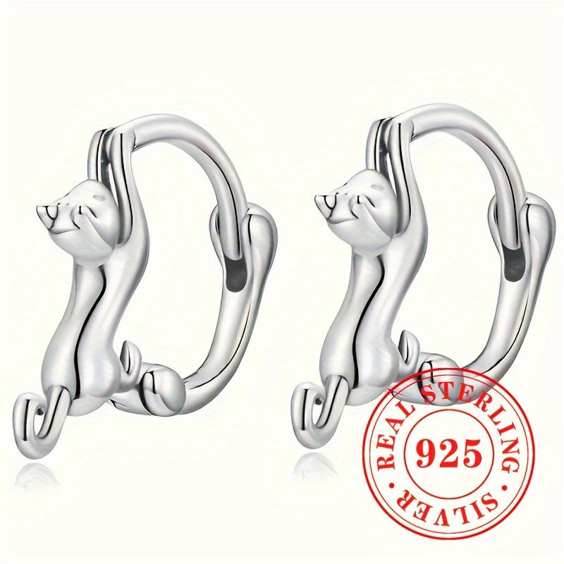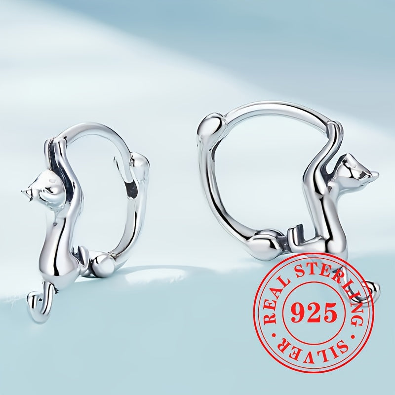 Adorable S925 sterling silver cat hoop earrings perfect for daily wear or special occasions. Ideal for birthdays and parties.