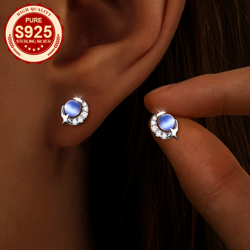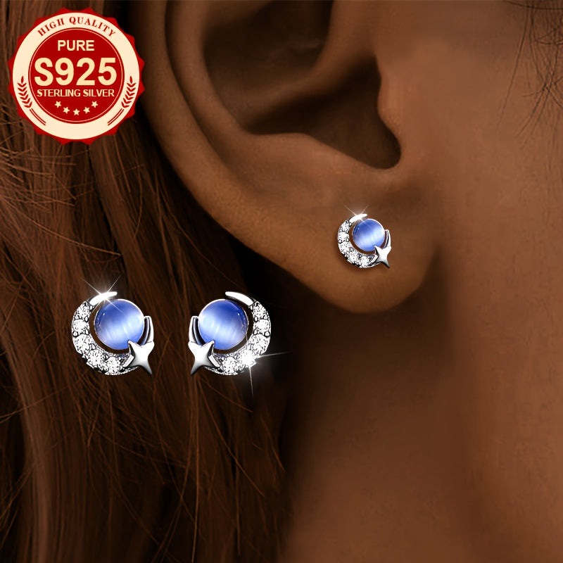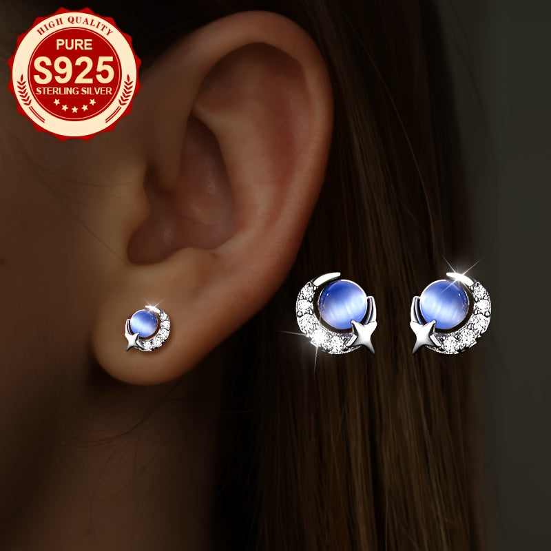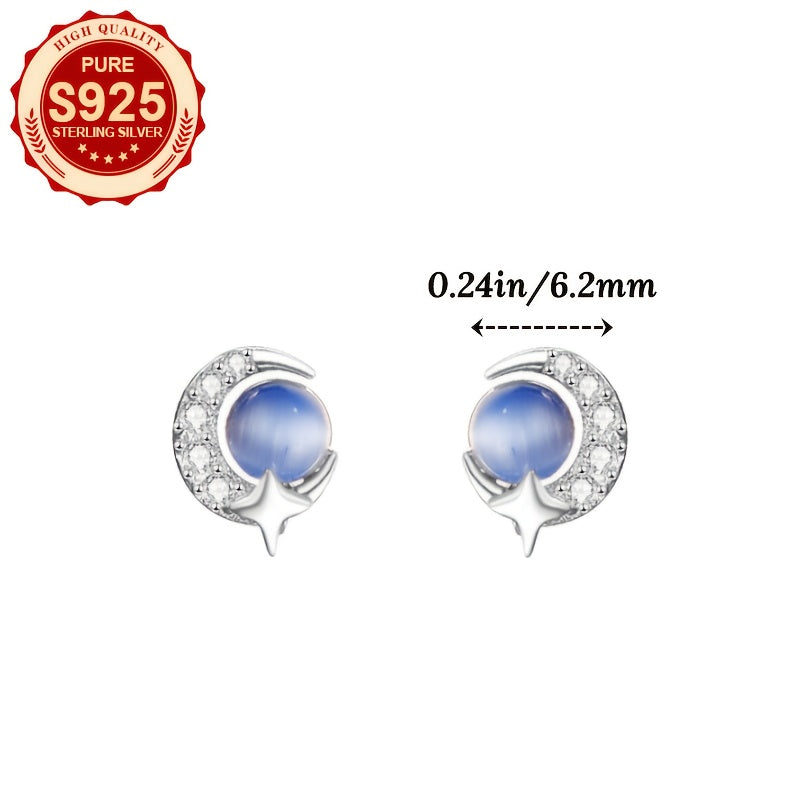 Add a touch of celestial charm to your look with these glittering crescent moon and star stud earrings. Made of hypoallergenic S925 sterling silver, these lightweight earrings are perfect for daily wear.