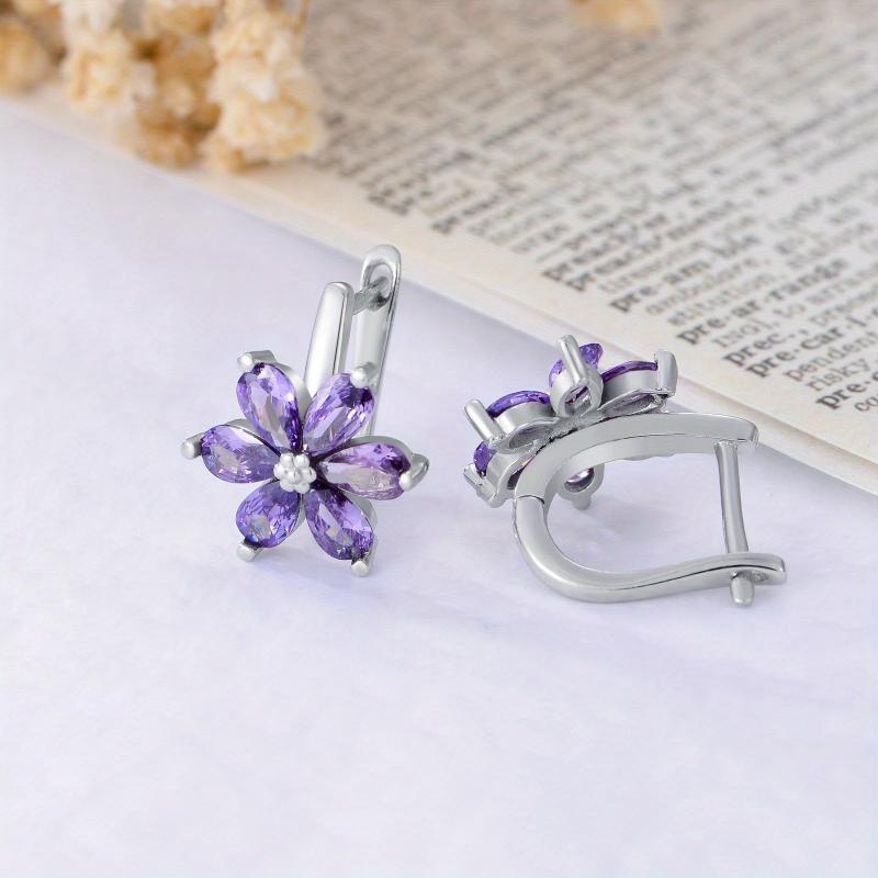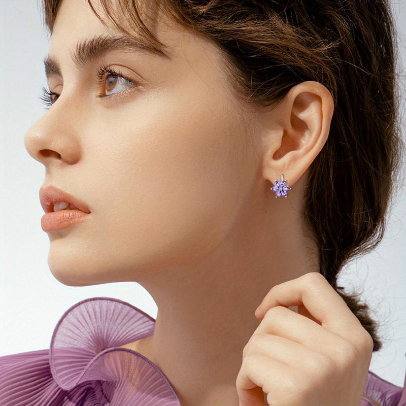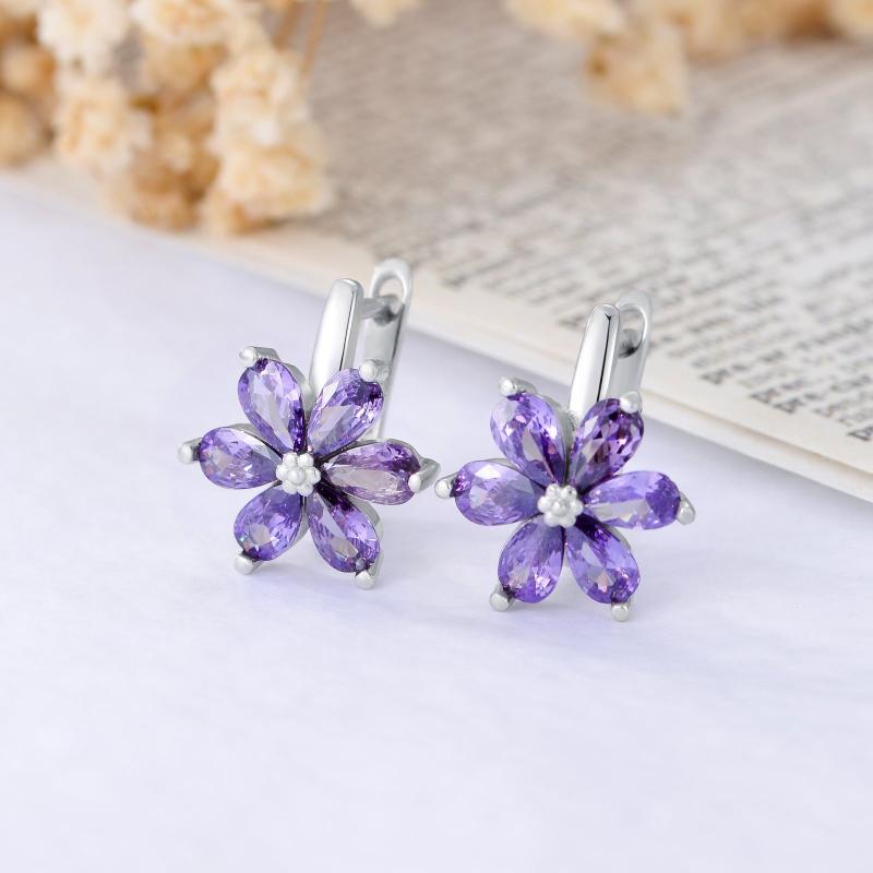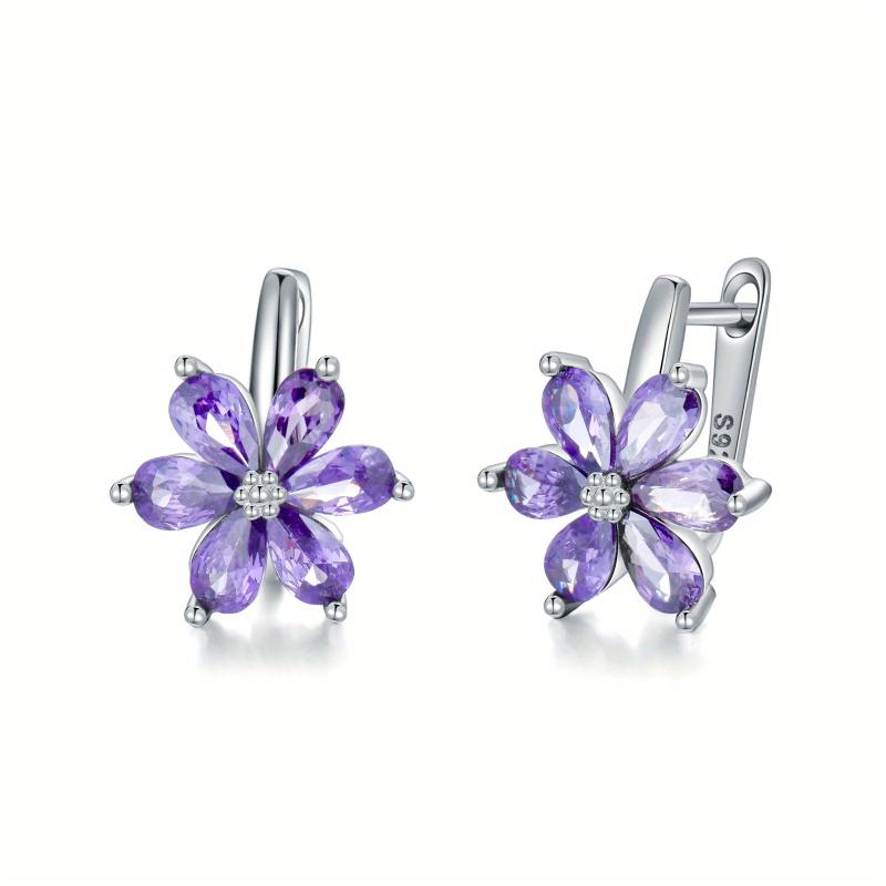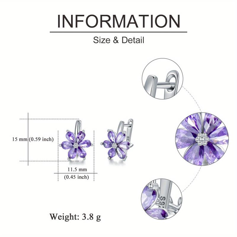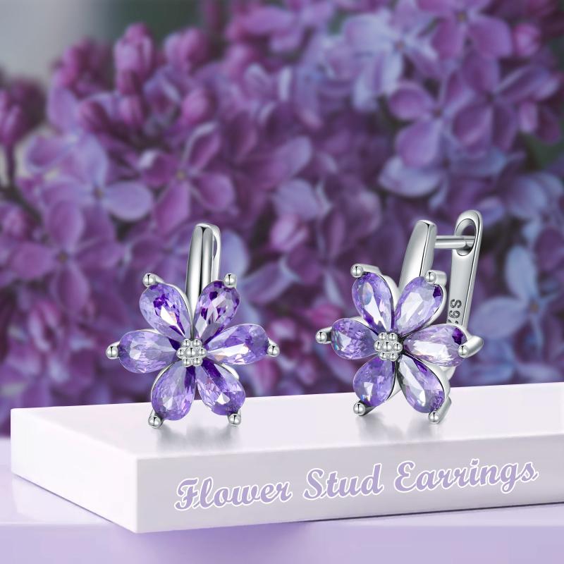 These beautiful daisy flower earrings are made of S925 sterling silver and feature purple June birthstone petals. They are perfect for women who love nature-inspired jewelry.
