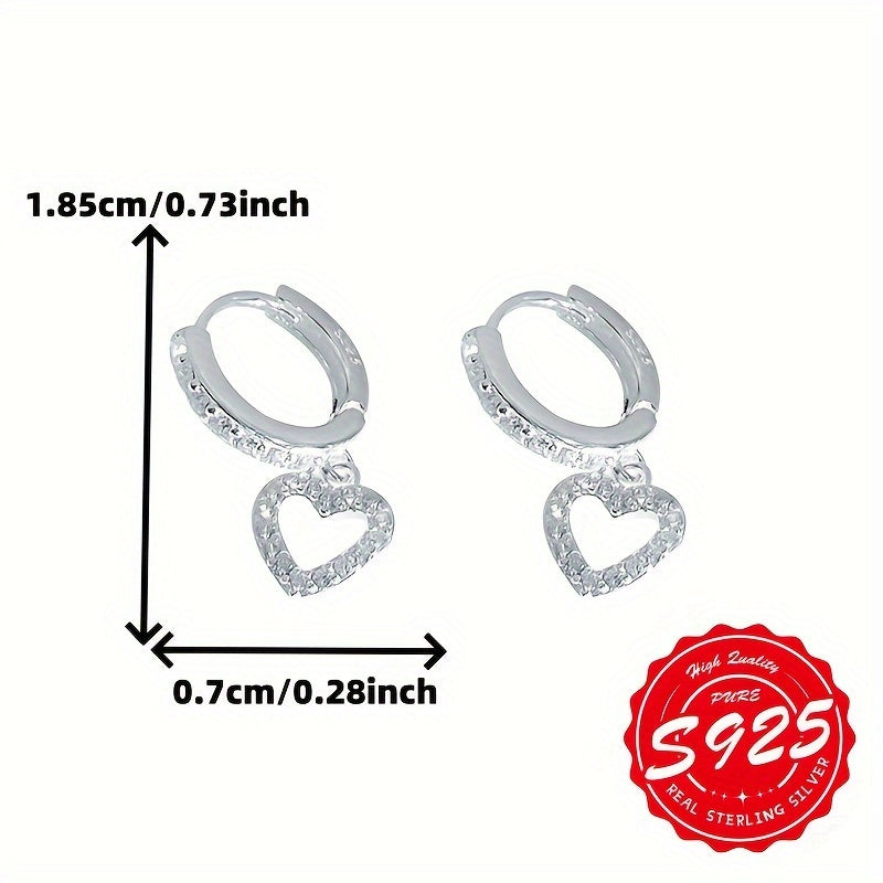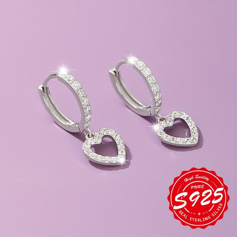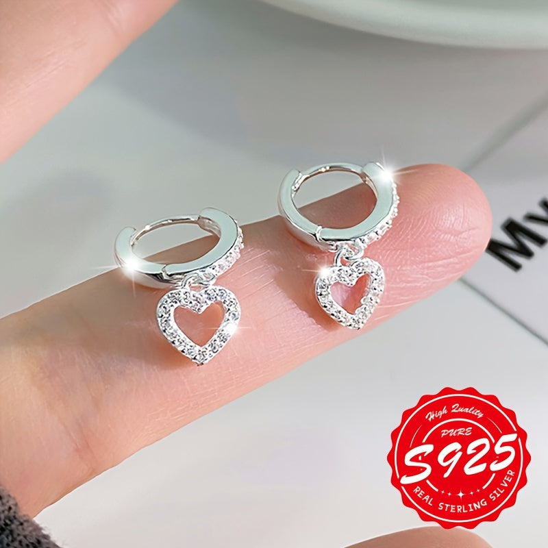 Elegant pair of S925 sterling silver earrings with hollow heart designs and sparkling French style. Perfect for women who appreciate fine jewelry.