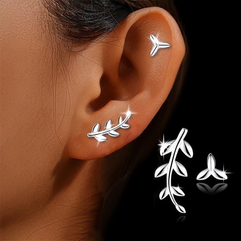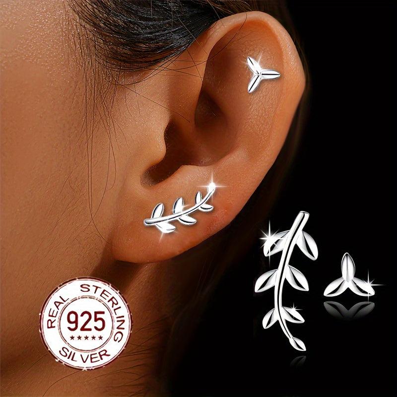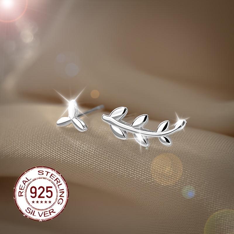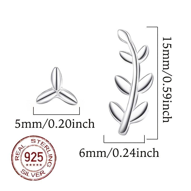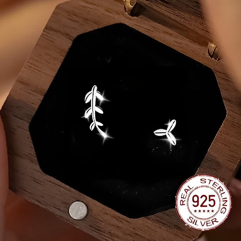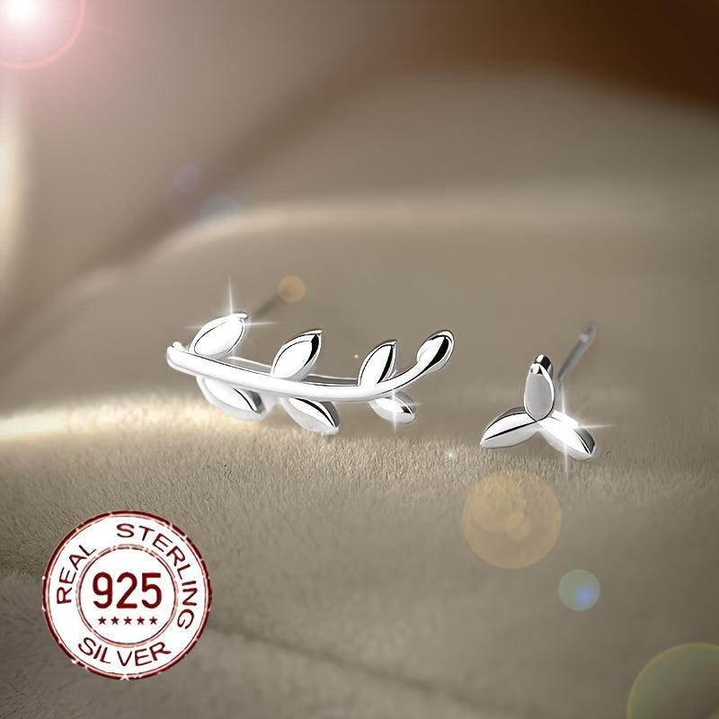 These S925 sterling silver leaf earrings feature an asymmetrical design that adds a touch of high-end style. Perfect for those who appreciate niche and elegant jewelry.
