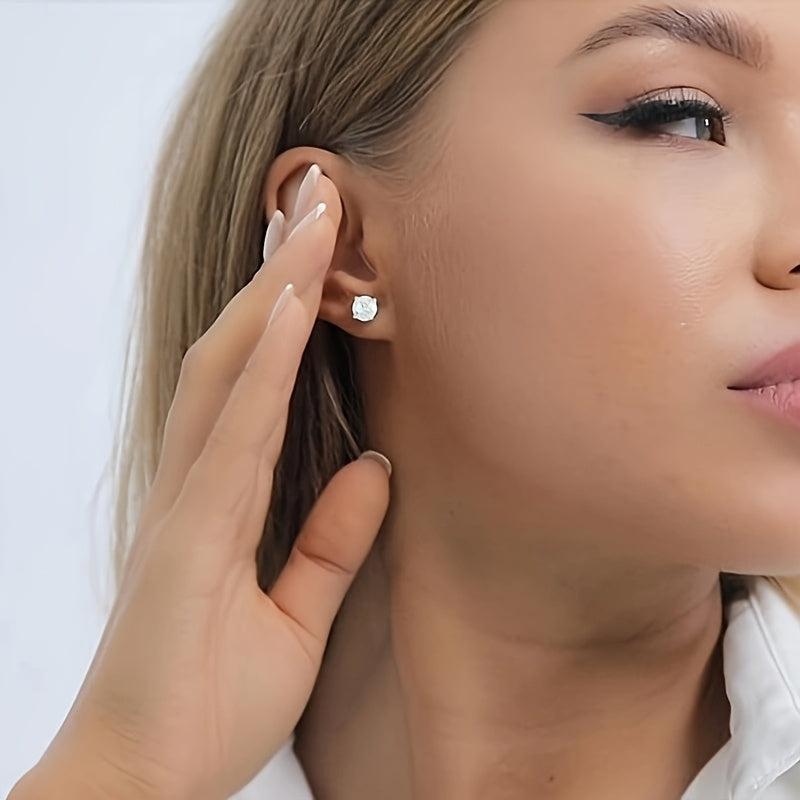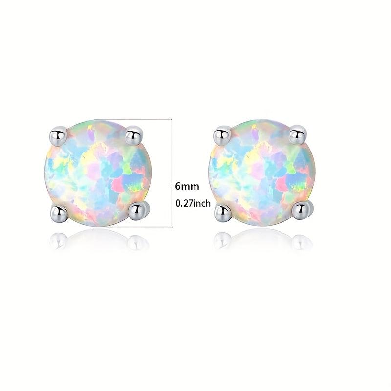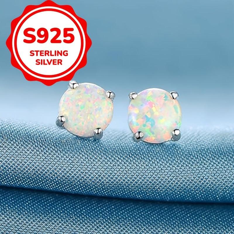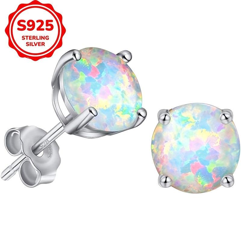 These stylish S925 sterling silver stud earrings feature synthetic opal, making them perfect for daily wear and gift giving.