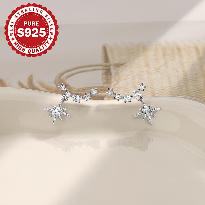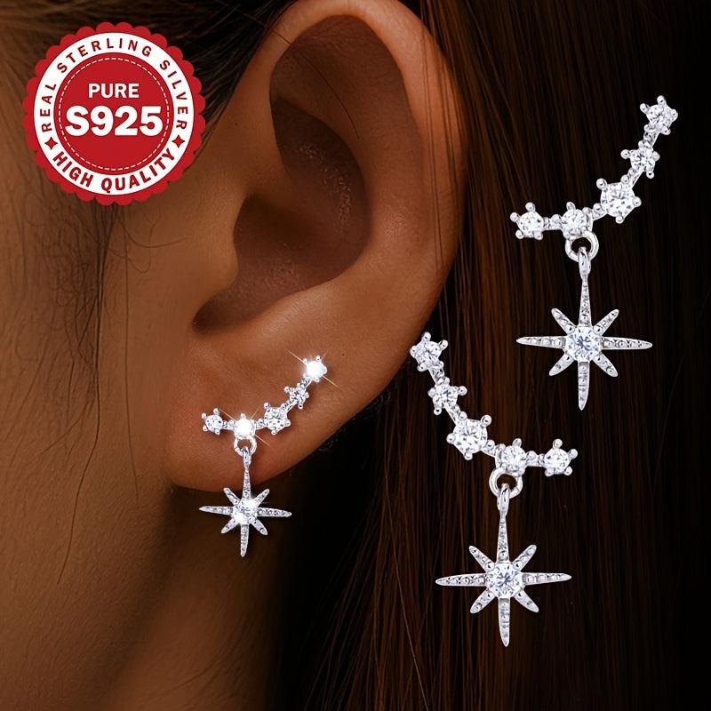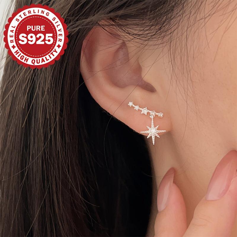 Elegant and stylish earrings crafted from S925 sterling silver with a row of eight pointed stars. Perfect for parties and special occasions.