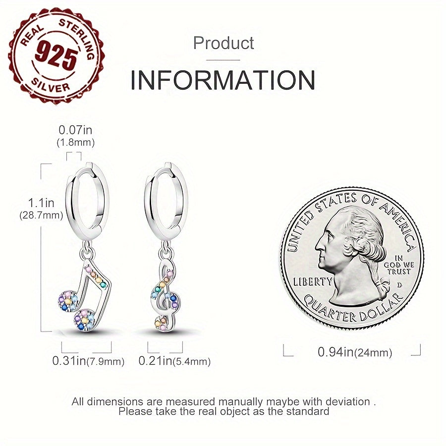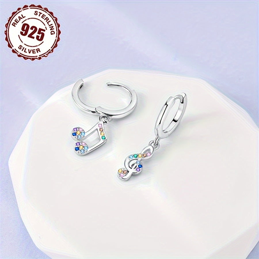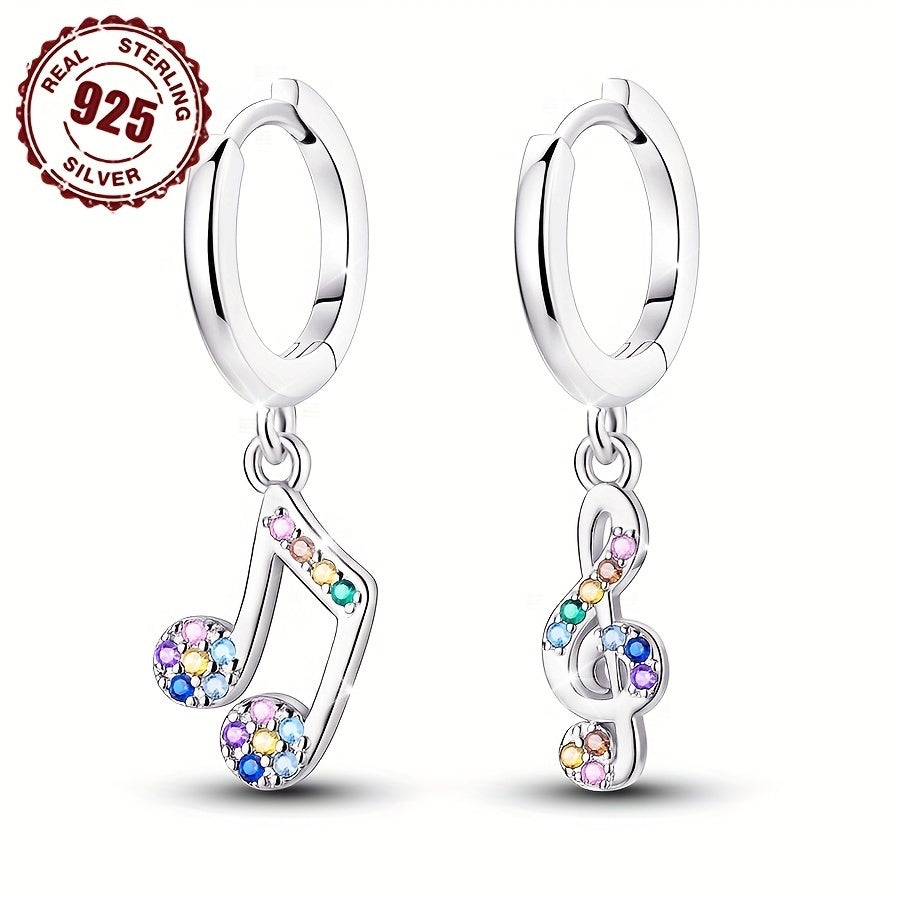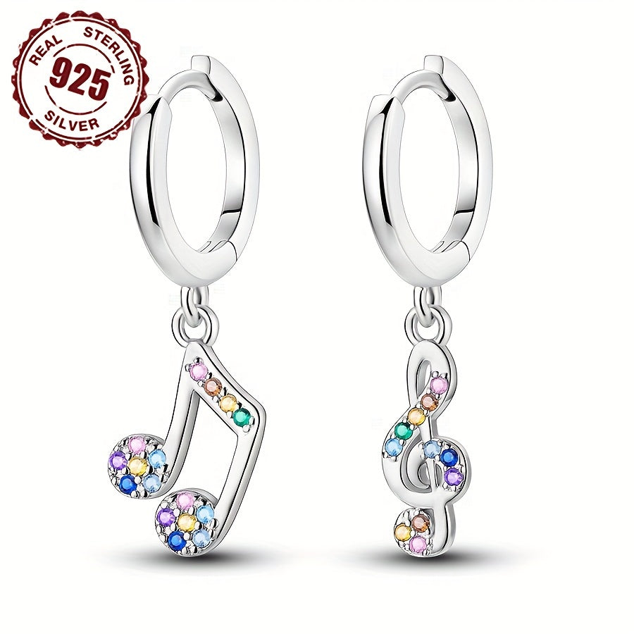 Add a touch of musical elegance to your style with these S925 sterling silver earrings featuring colorful zirconia. Perfect for music lovers and a great birthday gift idea.