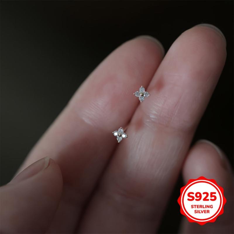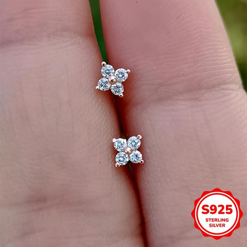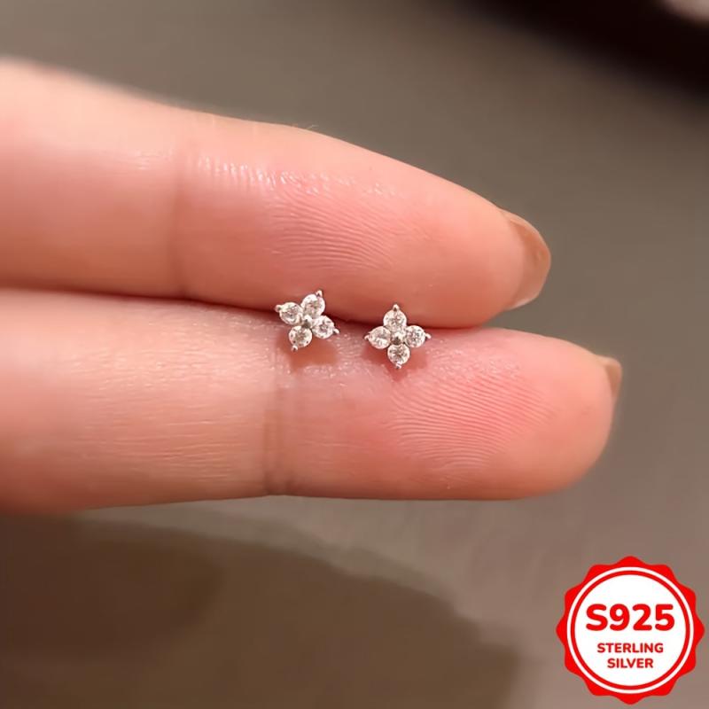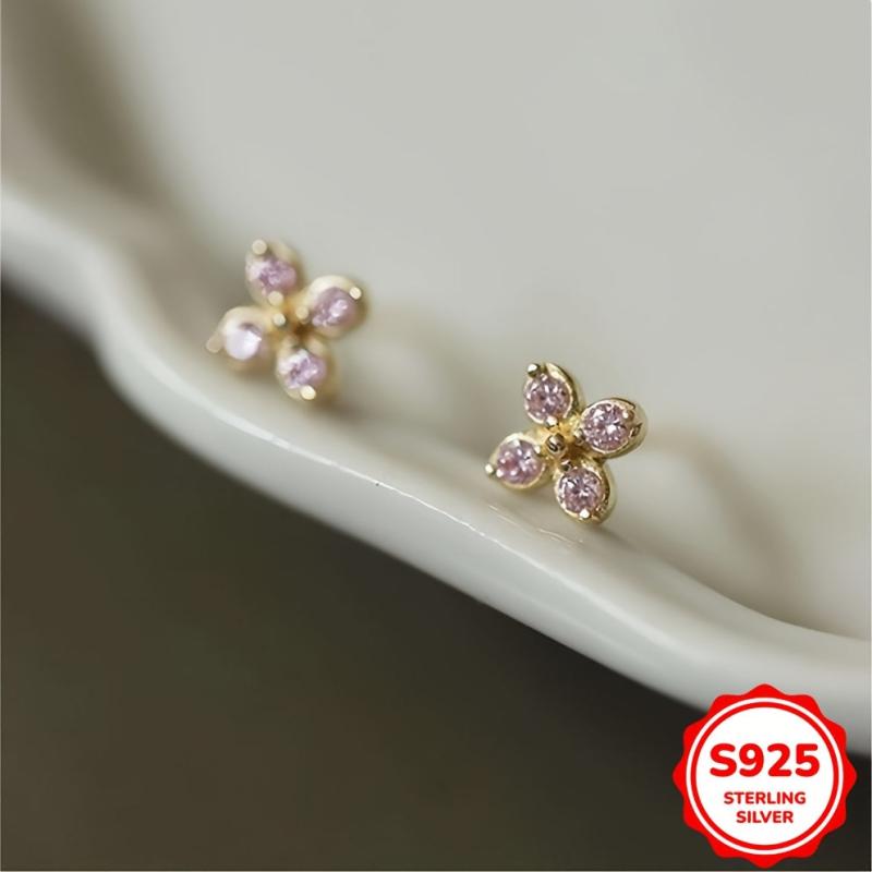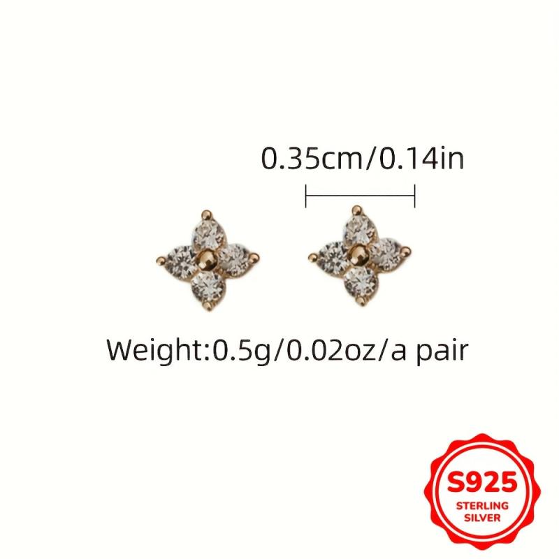 These earrings feature a four-leaf clover design with zirconia accents. They are crafted from S925 pure silver with 14K gold plating for an elegant touch.