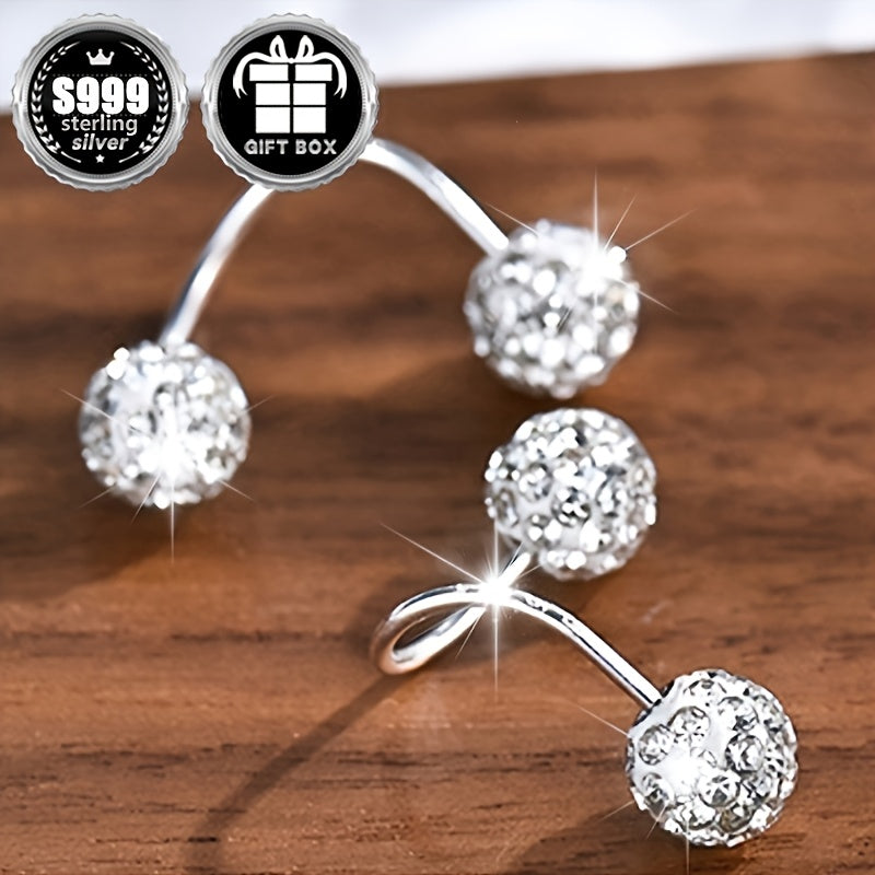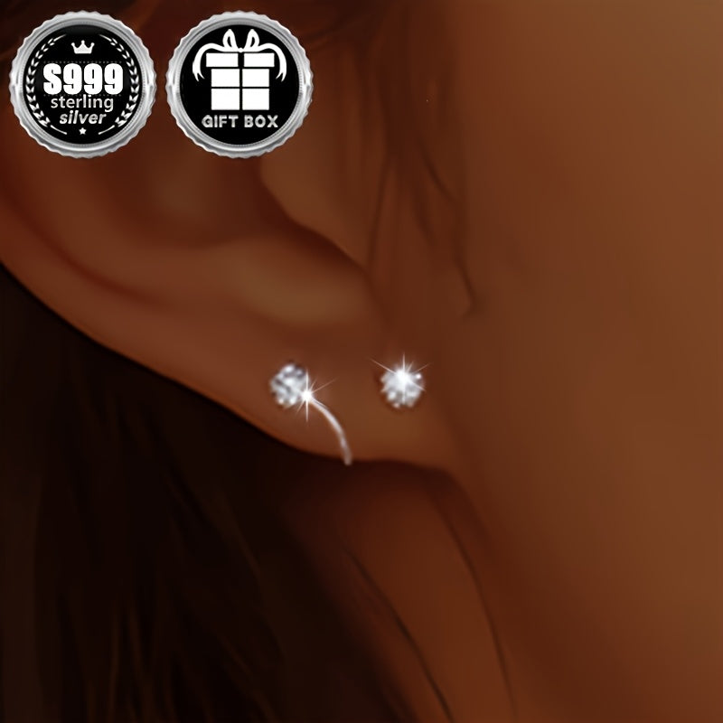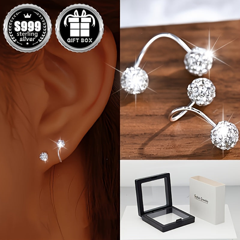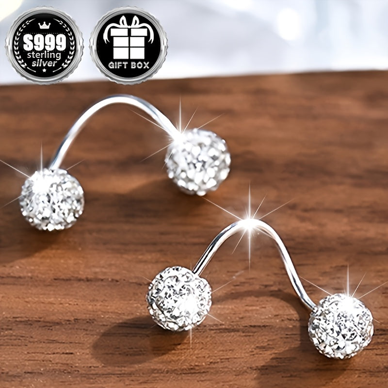 These sterling silver stud earrings feature a spiral drop design with cubic zirconia inlay, making them perfect for daily wear, parties, banquets, and weddings.