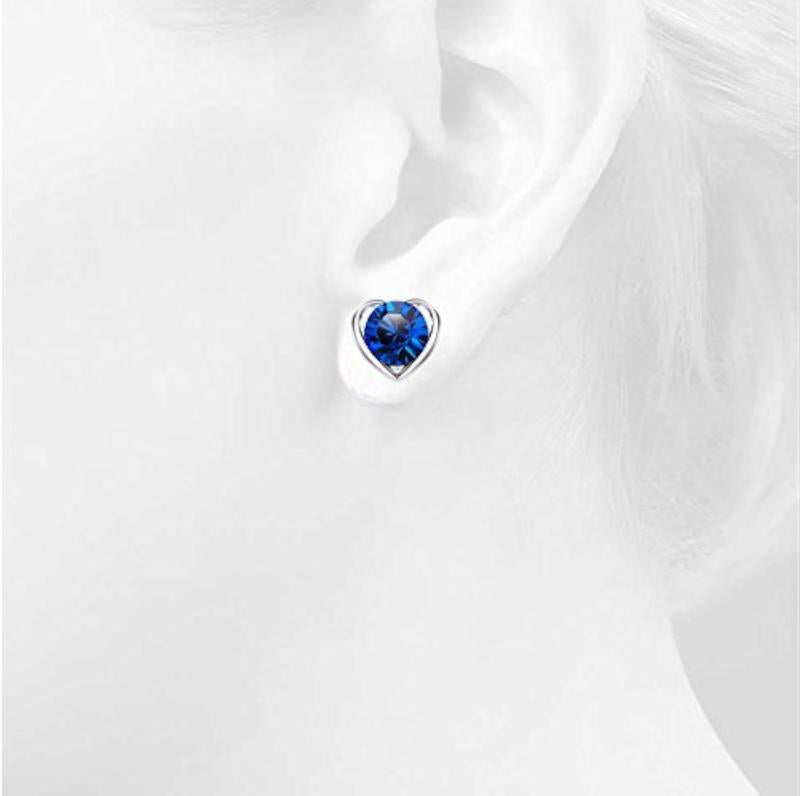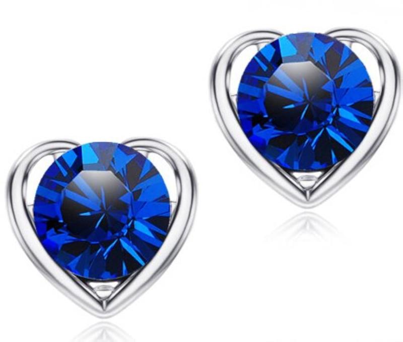 Elegant open heart design studs featuring sapphire crystal accents, perfect for adding a touch of sparkle to any outfit.
