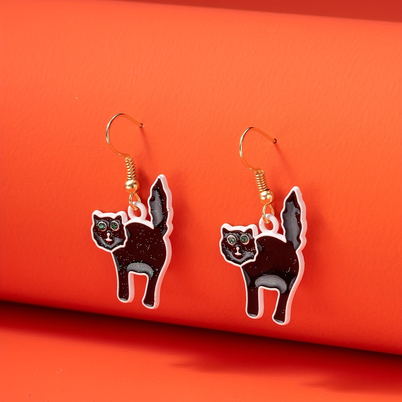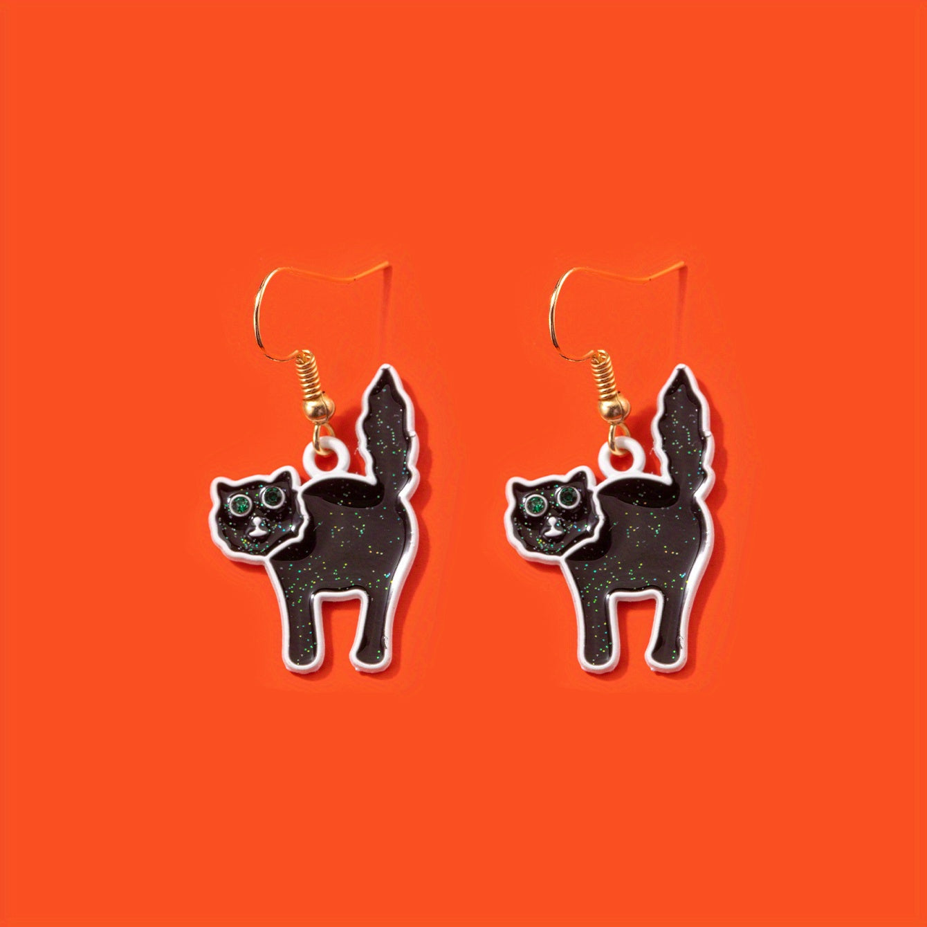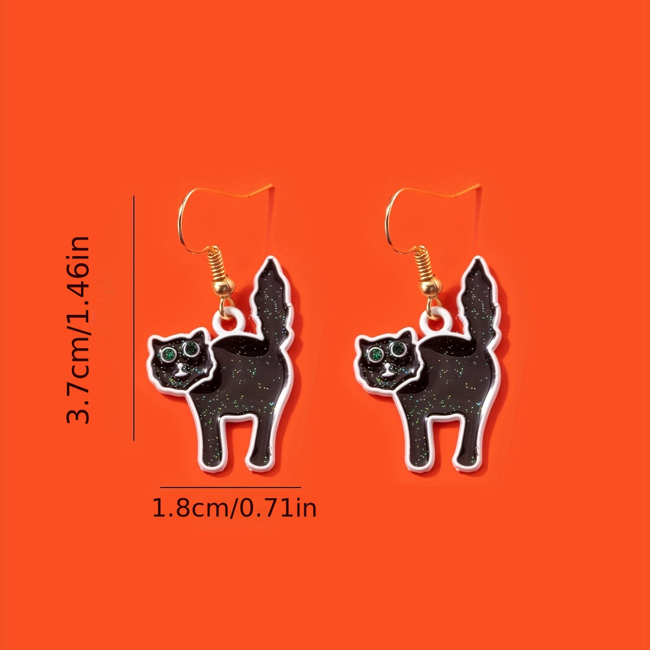 These Halloween themed earrings feature a scared cat design with green zircon eyes. Made from zinc alloy, these dangle earrings are perfect for adding a touch of goth style to any outfit. A creative and unique gift for any female in your life.