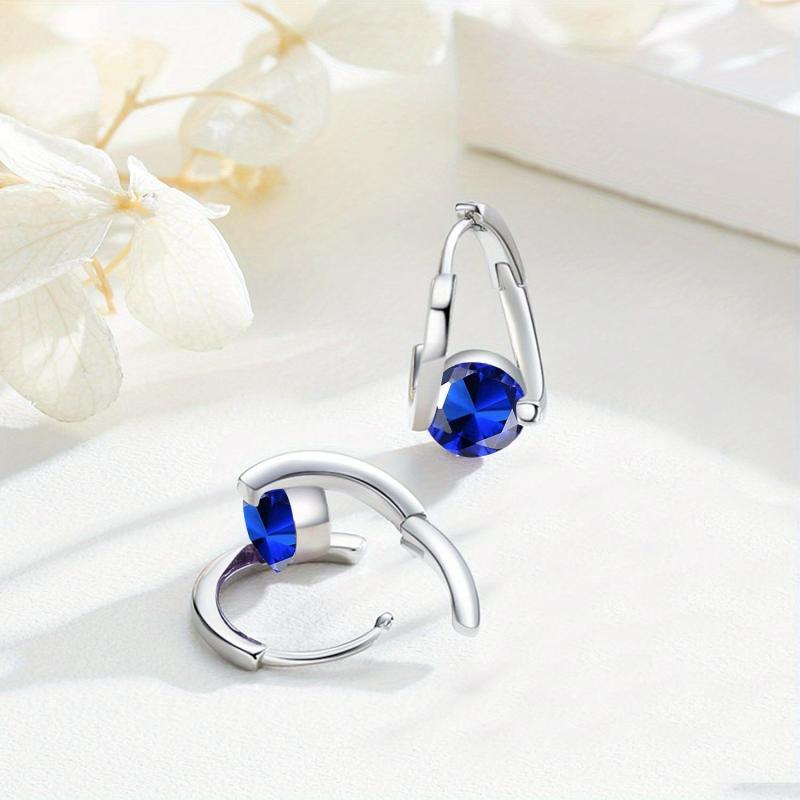 These hoop earrings are perfect for women born in September. Made from 925 sterling silver, featuring September birthstone. Hypoallergenic design suitable for sensitive ears.