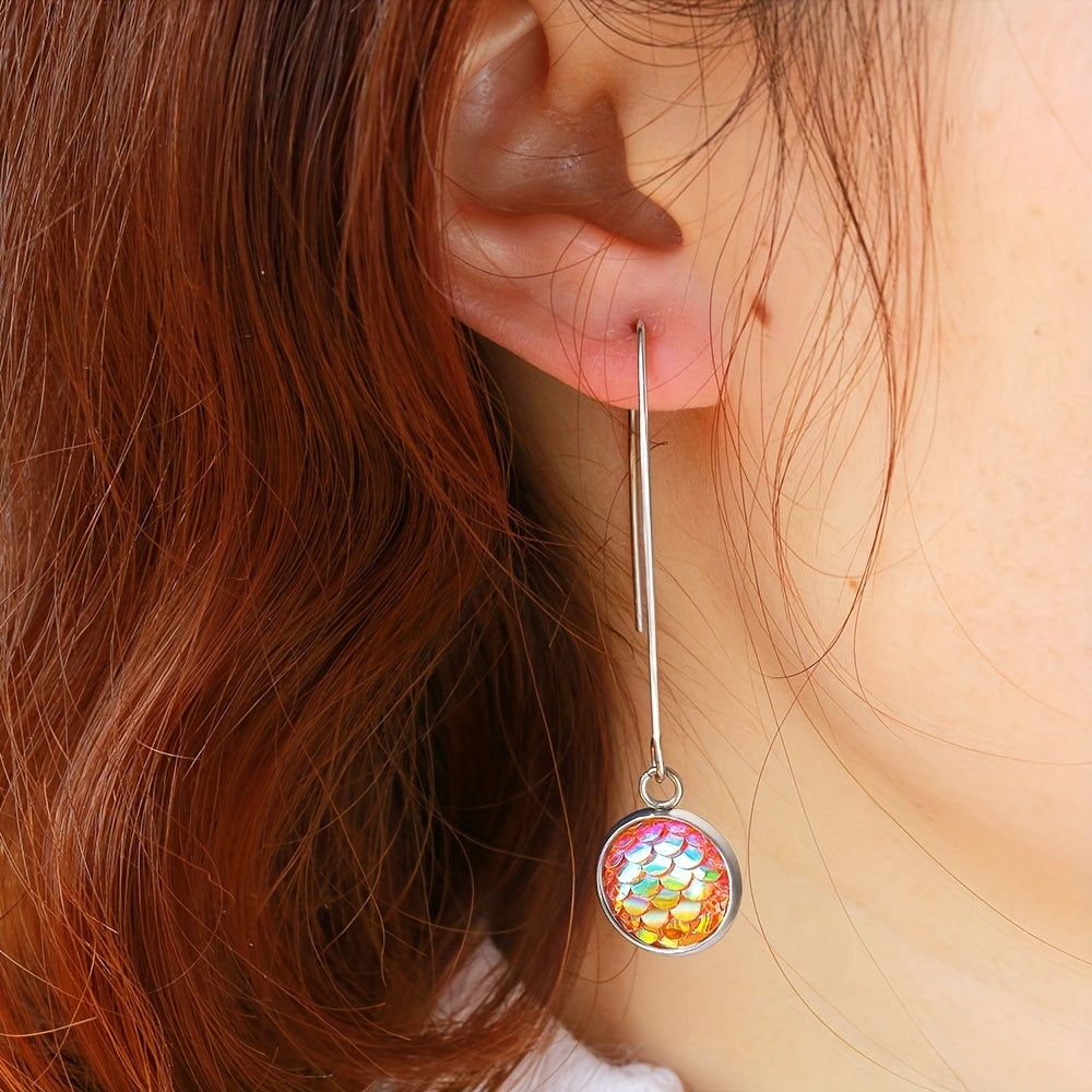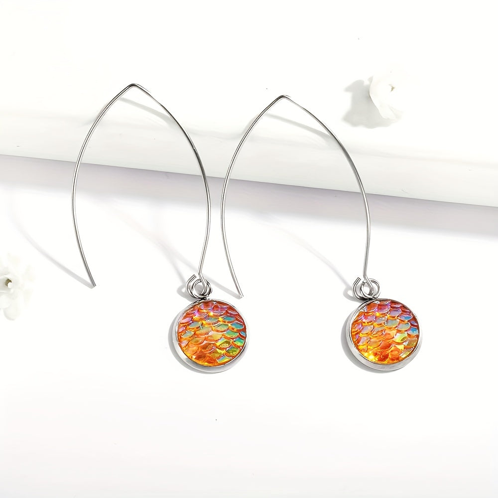 These delicate round sequins pattern hook dangle earrings are perfect for daily casual wear. A great gift for women and girls.