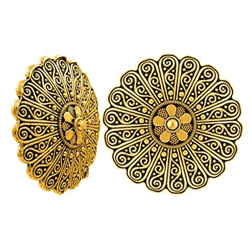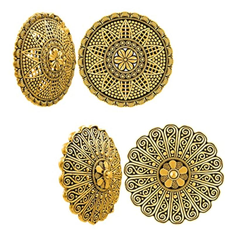 Add a touch of traditional elegance to your look with this set of 2 oxidised plated tops earrings. These earrings are perfect for accessorizing both casual and ethnic outfits.